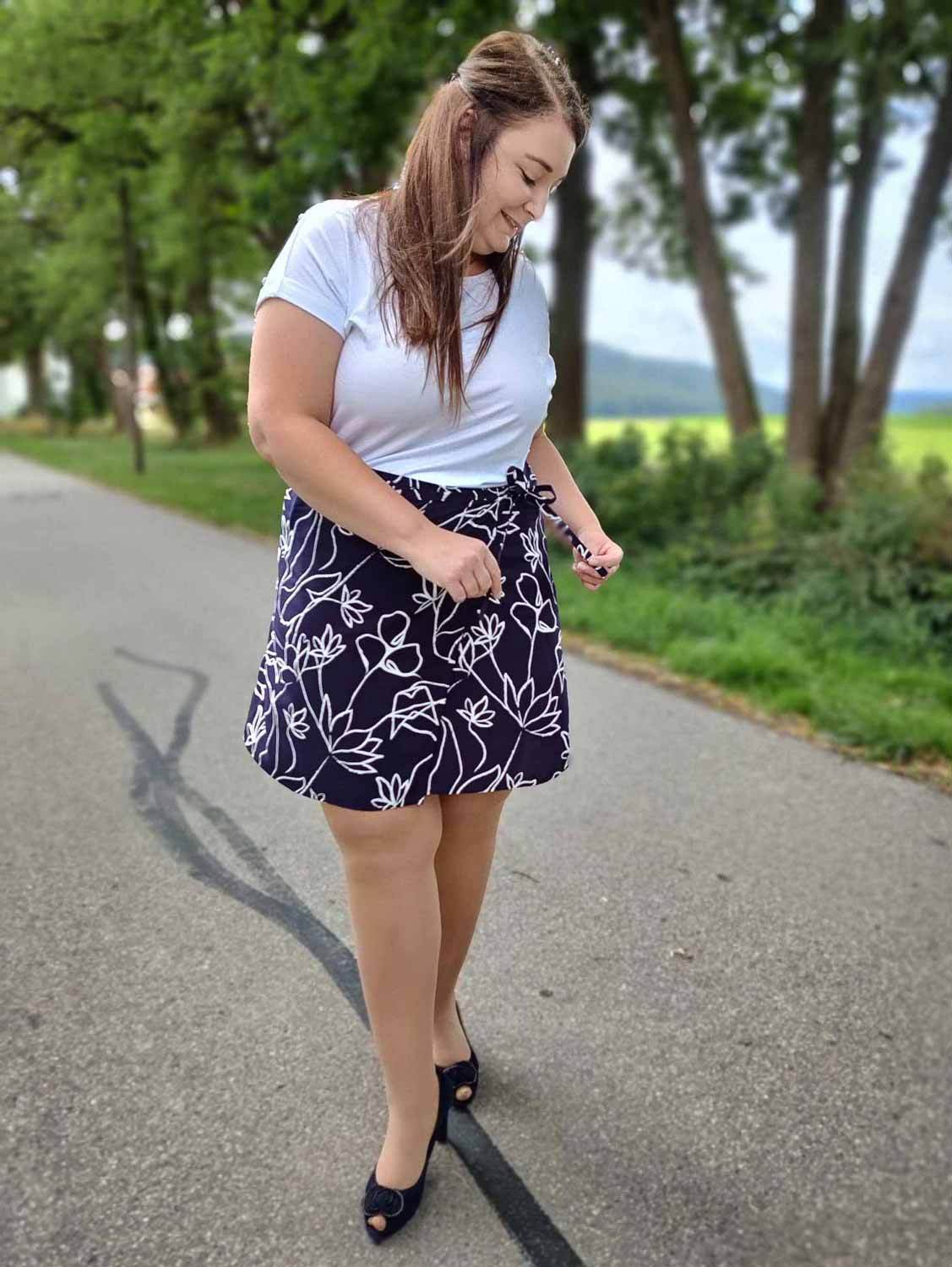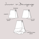 Dieser Schnitt für einen sommerlichen Wickelrock aus Webware wie Viskose oder Baumwoll-Popeline, den du sportlich, jugendlich mit rundem oder geradem Saum in Minirock Länge oder elegant, feminin mit Volant-Saum in Midirock Länge (Vokuhila) nähen und mit einem kleinen Knopf und Bindeband schließen kannst, trägt den schönen Namen "Immer in Bewegung". Das Schnittmuster beinhaltet natürlich eine ausführliche Anleitung und die Damen Größen 32 - 62 und wird dir nach dem Kauf als Sofort Download in PDF Format zur Verfügung gestellt.