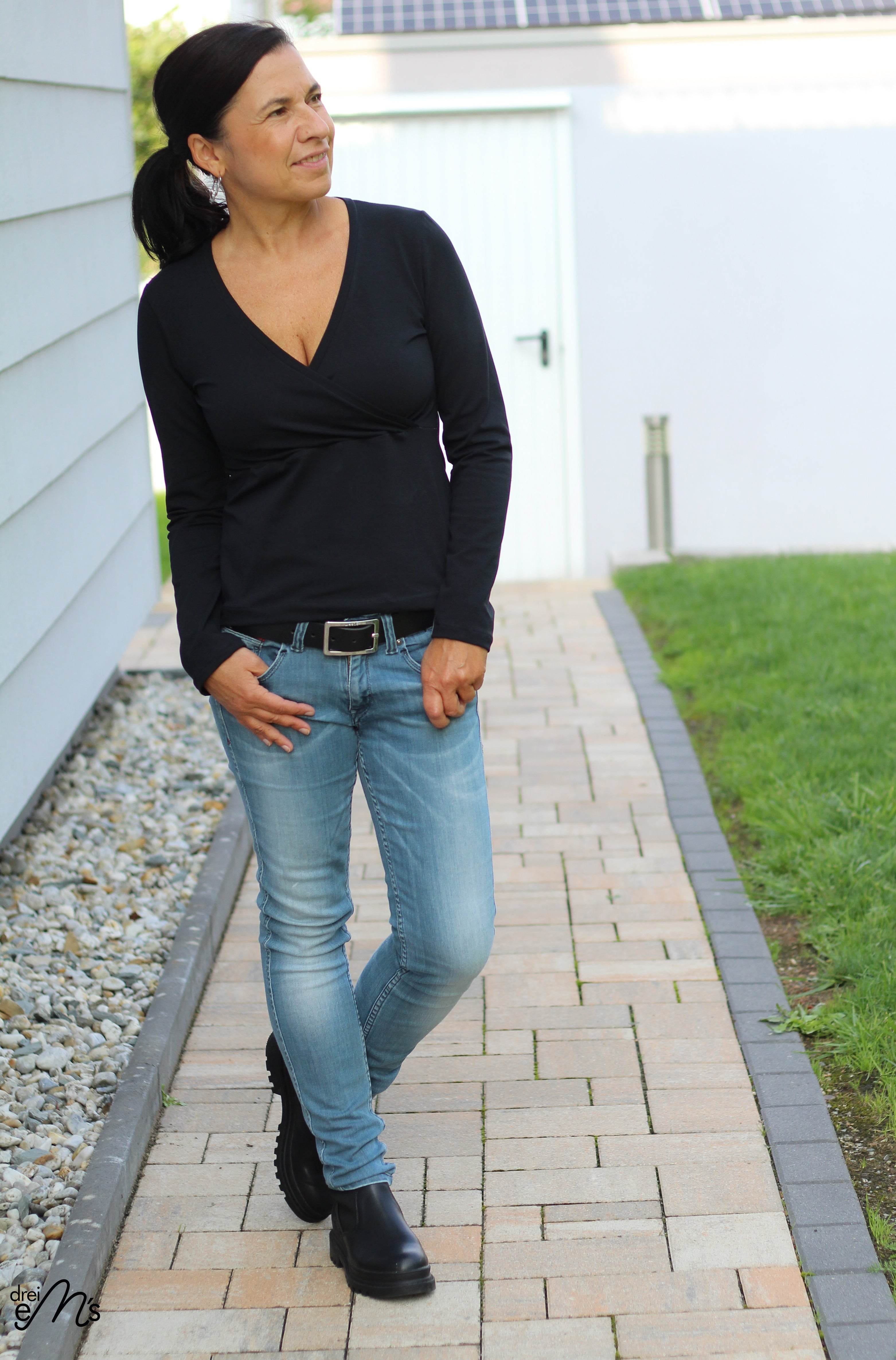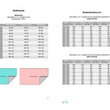 EDLING ist ein Wickelshirt in den Größen 34-54. Der Schnitt enthält 2 Längen für die Körpergröße 1,58m und 1,68m. Ebenso sind drei Ärmellängen enthalten: kurzar, 3/4-arm und langarm. Das Shirt ist im Vorderteil geteilt. Für das untere Vorderteil steht dir eine engere und eine weitere, ausgestellte Variante zur Verfügung.
