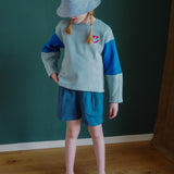Eine besonders schöne Optik verleiht dem Sweater die geometrische Nahtführung der Ärmel, welche mit einem flachen Saum abgerundet werden, denn oft fühlen Kinder sich von zu dicken Bündchen oder Nähten gestört.
