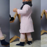 Le modèle Stella est une robe en maille près du corps qui offre un look hivernal parfait pour une petite fille. Elle est spécialement conçue pour des mailles hivernales duveteuses. Associée au tour de cou assorti et disponible individuellement, elle confère un magnifique look hivernal de petite fille.