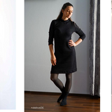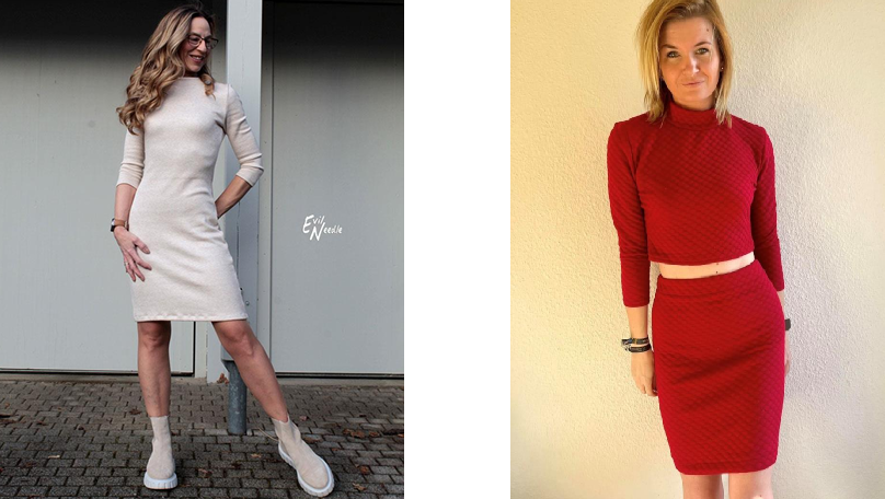 Ein MUST HAVE in jedem Kleiderschrank, ist ein figurbetontes Strickkleid. Vor allem, wenn es noch schnell und einfach genäht ist. Durch eine Teilung lässt sich auch ein Zweiteiler zaubern und Stoffe miteinander Kombinieren. Im Schnittmuster ist eine Kragenvariante und ein Rundhalsausschnitt enthalten. Die 7/8 Ärmel runden das ganze ab. Natürlich kann alles selbstständig angepasst werden. Das Schnittmuster ist für sehr dehnbare Stoffe ausgelegt, kann aber auch mit weniger dehnbaren Stoffen in einer anderen Größe genäht werden.
