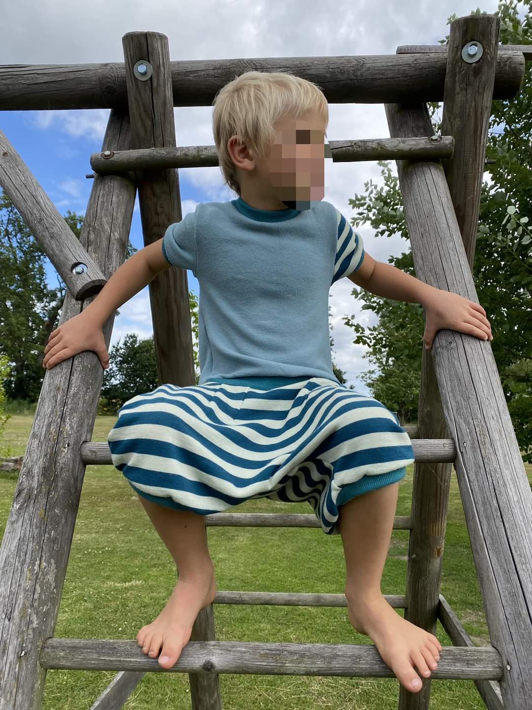 - er kann als Einteiler oder als T-Shirt/ Hose Kombi genäht werden