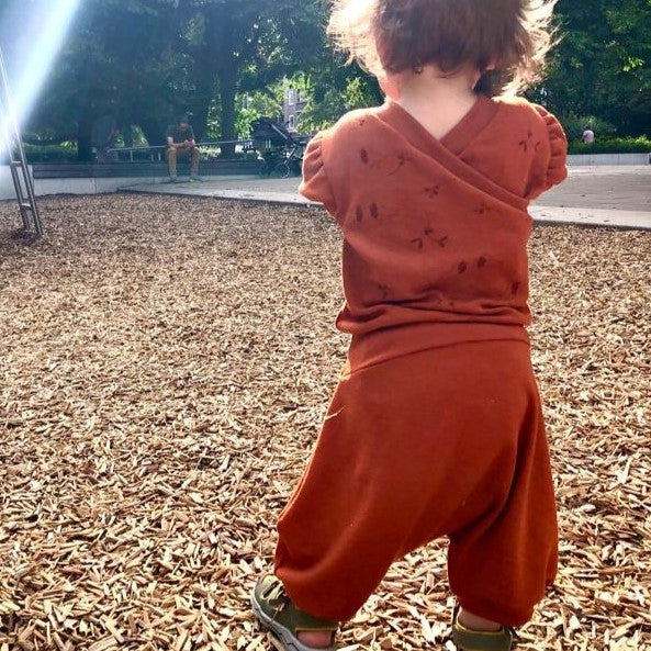 Es kann sowohl als Einteiler oder als Zweiteiler genäht werden. Die Kreuzung am Rücken erlaubt ein "einfaches Einsteigen" in das Kleidungsstück. Der Schnitt überzeugt durch seine verspielte lockere Art, bringt 4 verschiedene Ärmelvarianten mit und ist leicht zu nähen. Die pumpige 3/4 Hose lässt den Trägern/Innen besonders viel Bewegungsfreiheit. Das Schnittmuster ist sowohl als DIN A4, DIN A0 und Beamer Datei erhältlich, in allen Varianten könnt ihr die verschiedenen Größen Ebenen ein- bzw ausblenden.