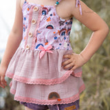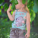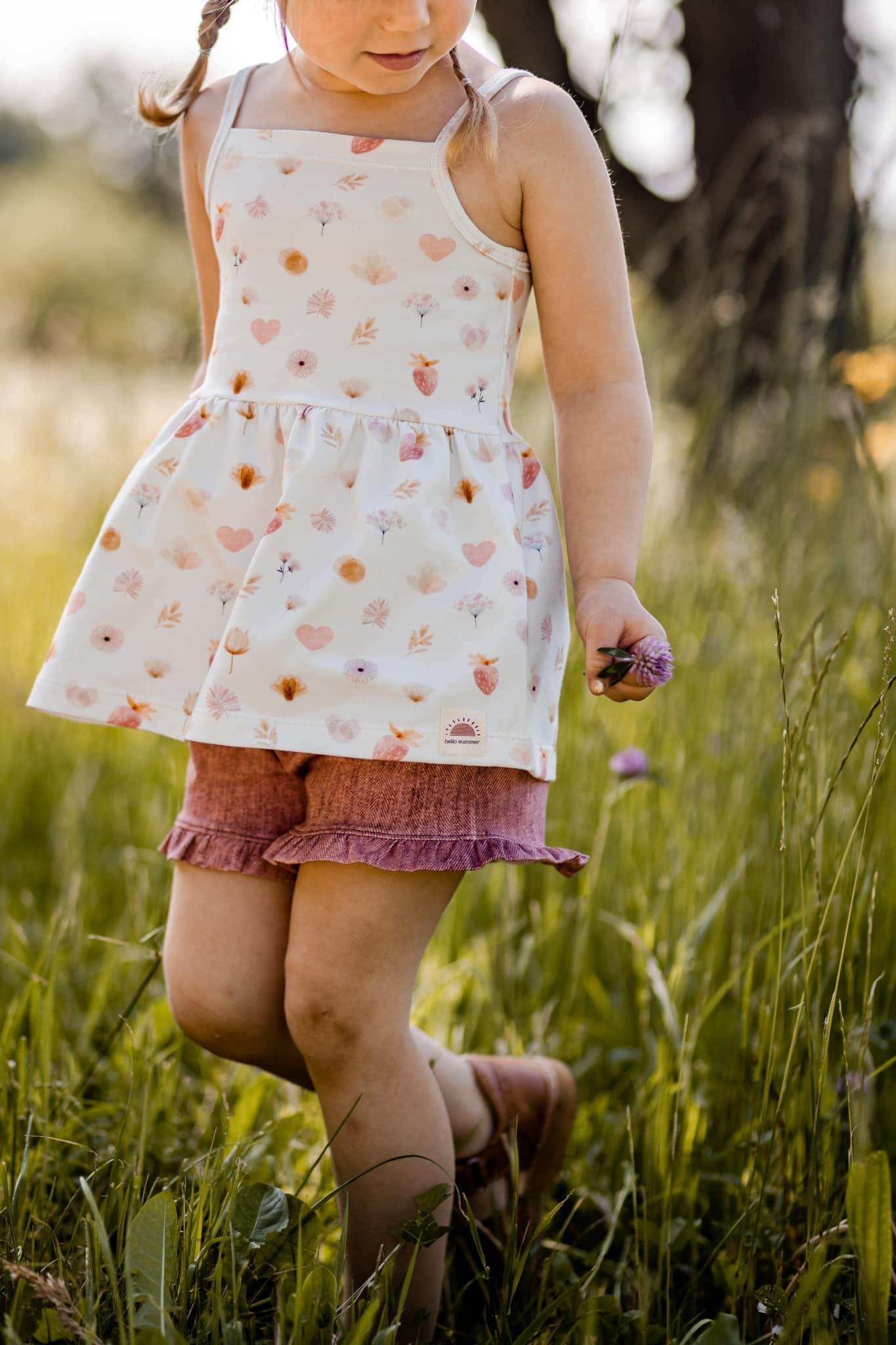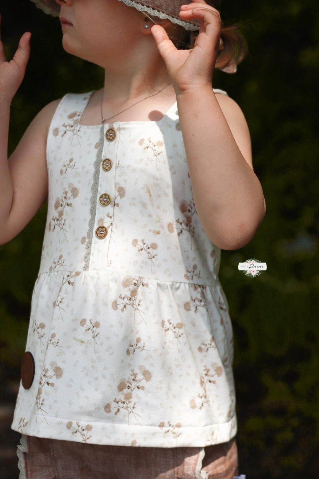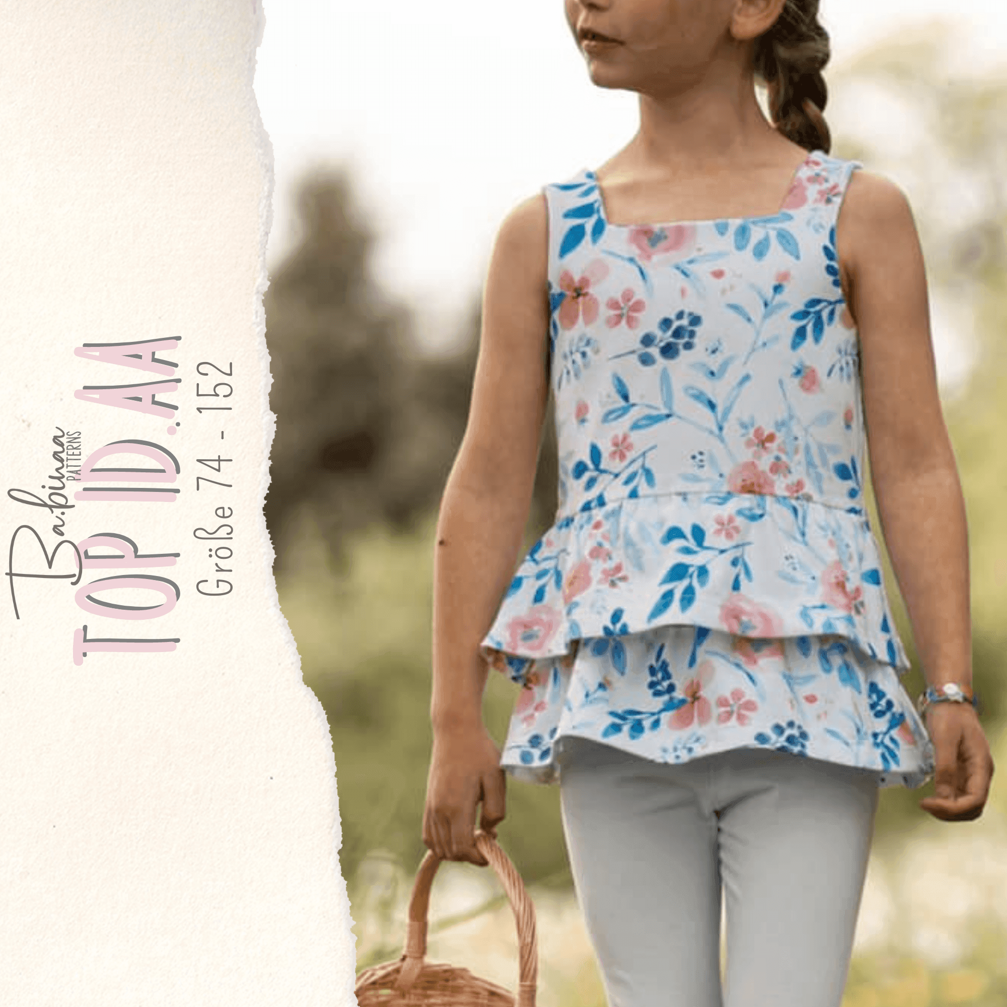 Meine Schnittmuster kommen mit einer ausführlich bebilderten Anleitung, die sowohl für Fortgeschrittene als auch für Anfänger mit etwas Näherfahrung geeignet ist. Das vielseitige Sommertop 'Top Id.aa' bietet zahlreiche Gestaltungsmöglichkeiten. Du kannst es mit Spaghettiträgern oder breiten Trägern nähen, entweder durchgehend oder zum Binden. Das Top kann schlicht, mit oder ohne Knopfleiste oder mit Volants genäht werden. Bei den Volants hast du die Wahl zwischen lang, kurz oder doppelt. Der Schnitt eignet sich besonders für gut dehnbare und leichte Stoffe wie beispielsweise Jersey.