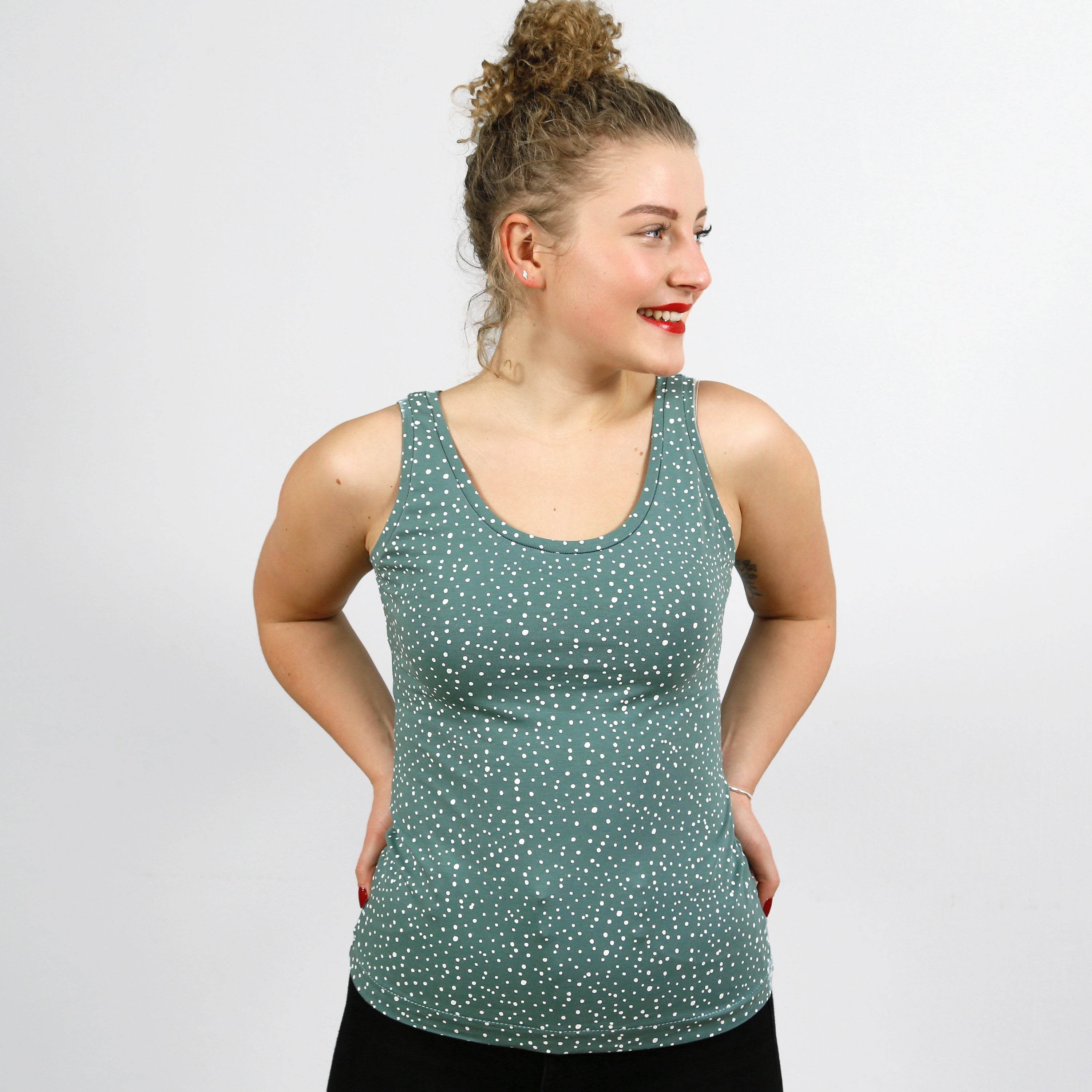 FRAU JUNO ist ein zeitloses Top, das rund ums Jahr im Einsatz sein wird. Im Sommer als lockeres Top mit Kräuseln im Vorderteil, im Winter als körpernahes Unterhemd zum Drunterziehen. Ein schnelles Basicteil, das Dich immer wieder begeistern wird.