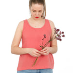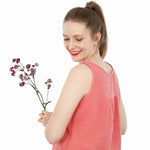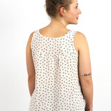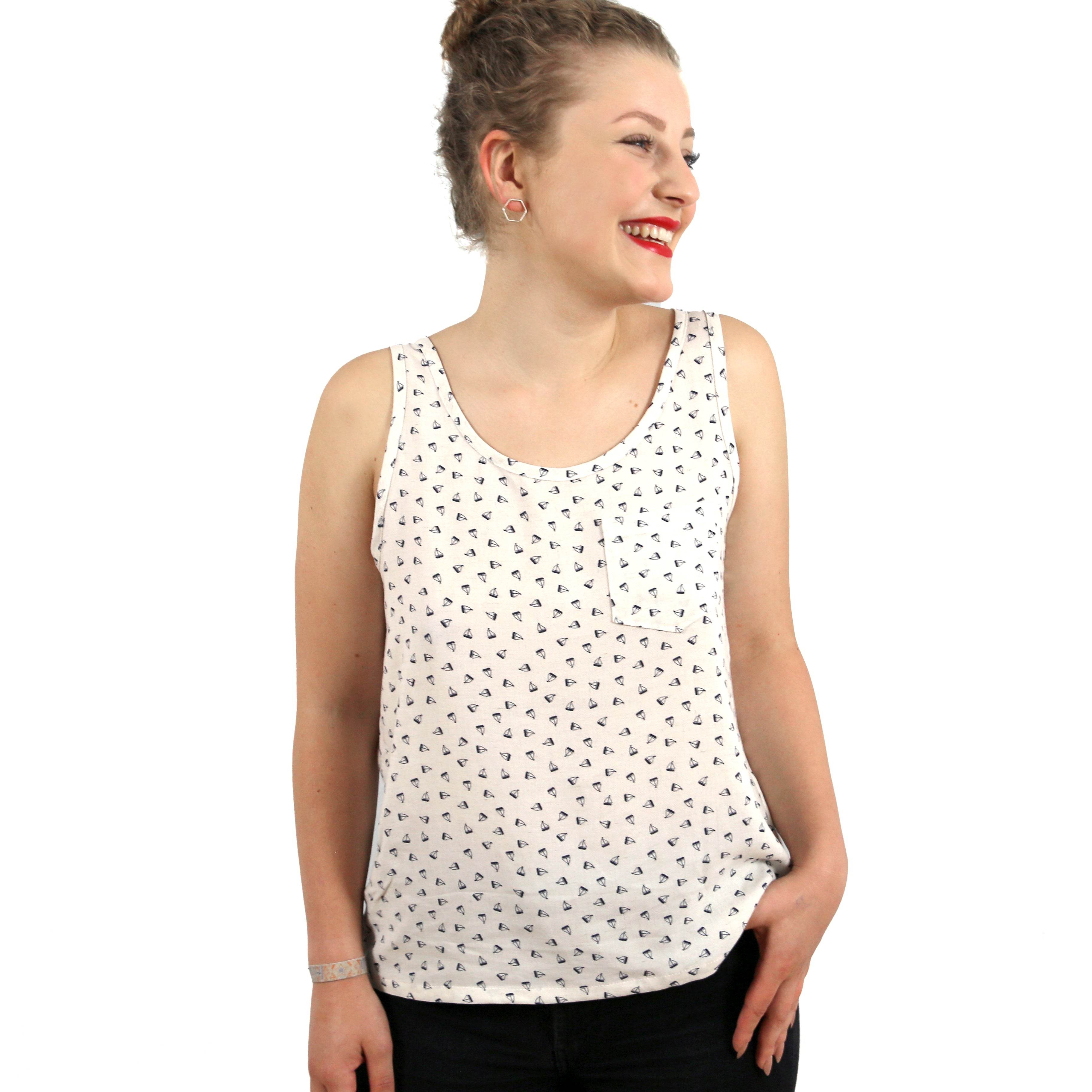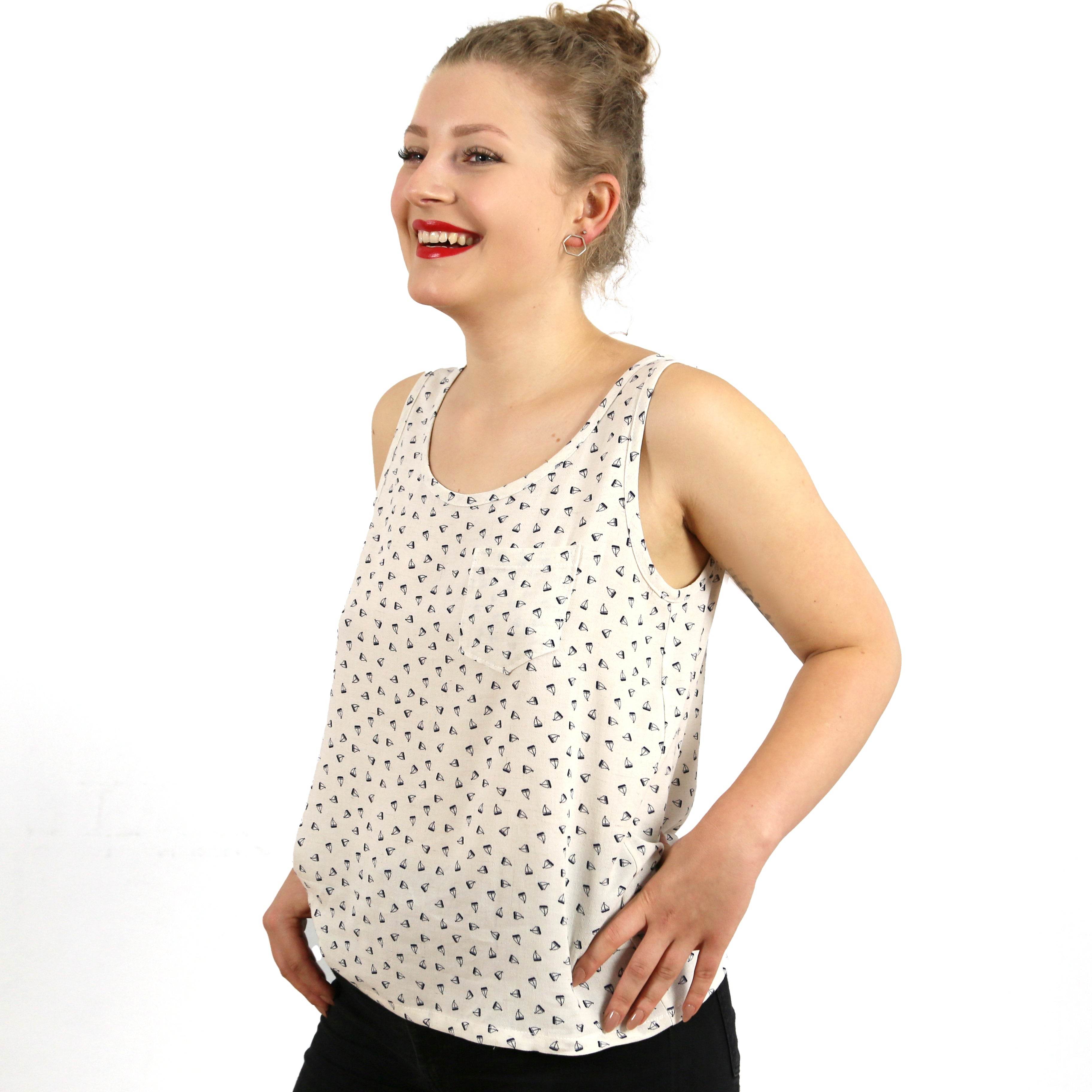 FRAU KOKO macht gute Laune an warmen Tagen. Das sommerliche Top aus leichter Webware hat die entspannte Passform, die Du im Sommer brauchst. Das leicht gekräuselte Rückenteil verleiht dem schlichten Top ein verspieltes Flair und eine angenehme Weite. Der große Rundhalsausschnitt kommt lässig daher und die kleine Brusttasche kann dezent oder als Akzent genutzt werden.