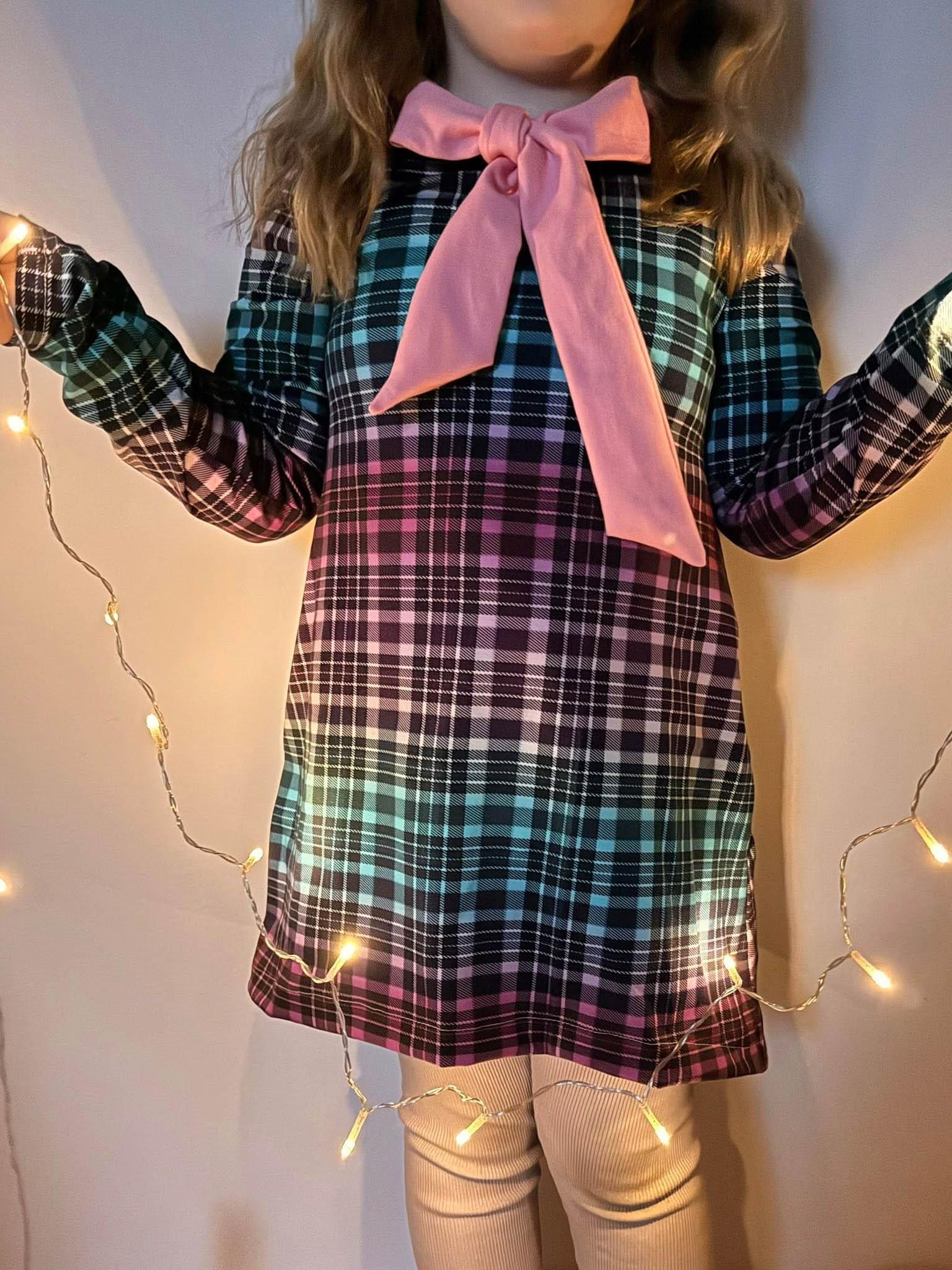 Die Sternschluppe ist eine hübsche Tunika in leichter A-Linie. Durch die festlichen Highlilghts wie z.B. der Bubikragen oder die Schluppe (zu bindende Schleife am Ausschnitt) ist die Sternschluppe eine tolle Weihnachtstunika! Wird die Tunika mit einem einfachen Beleg genäht, wird sie zu einem Basicstück, das in keinem Schrank fehlen darf.