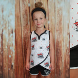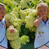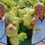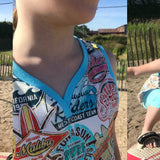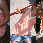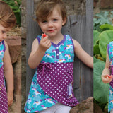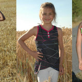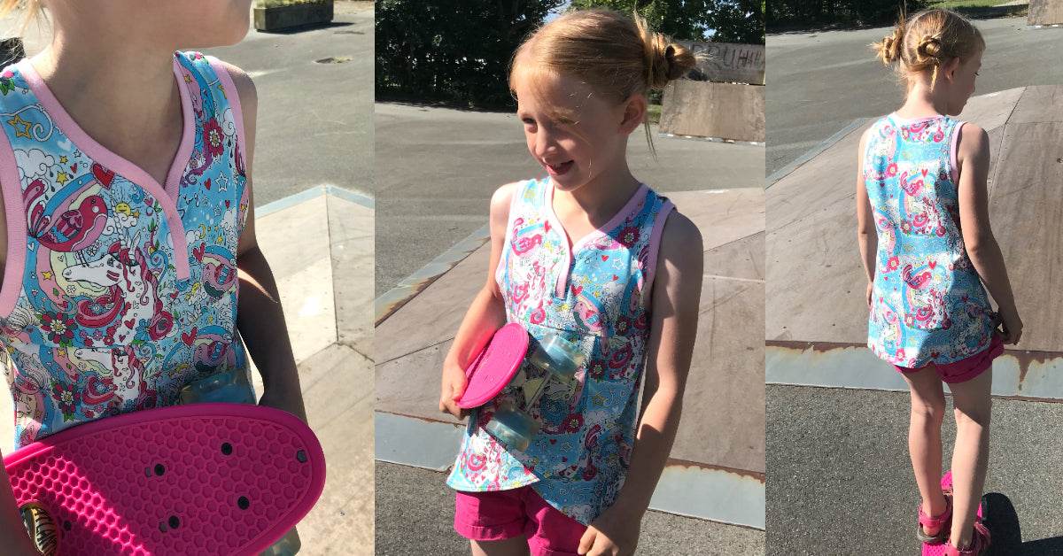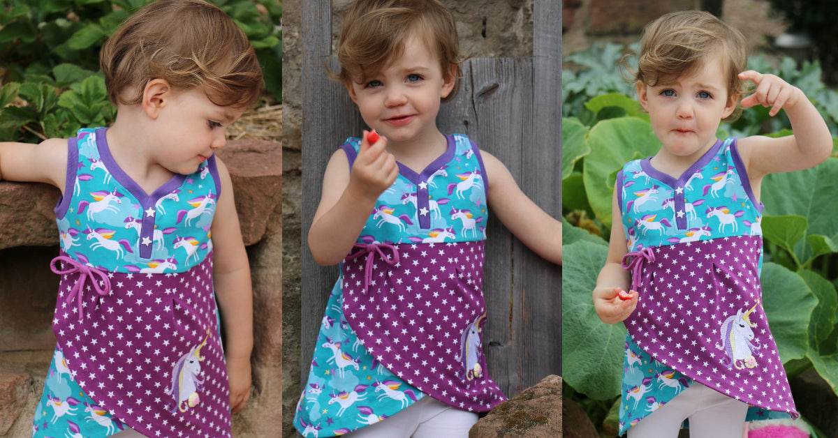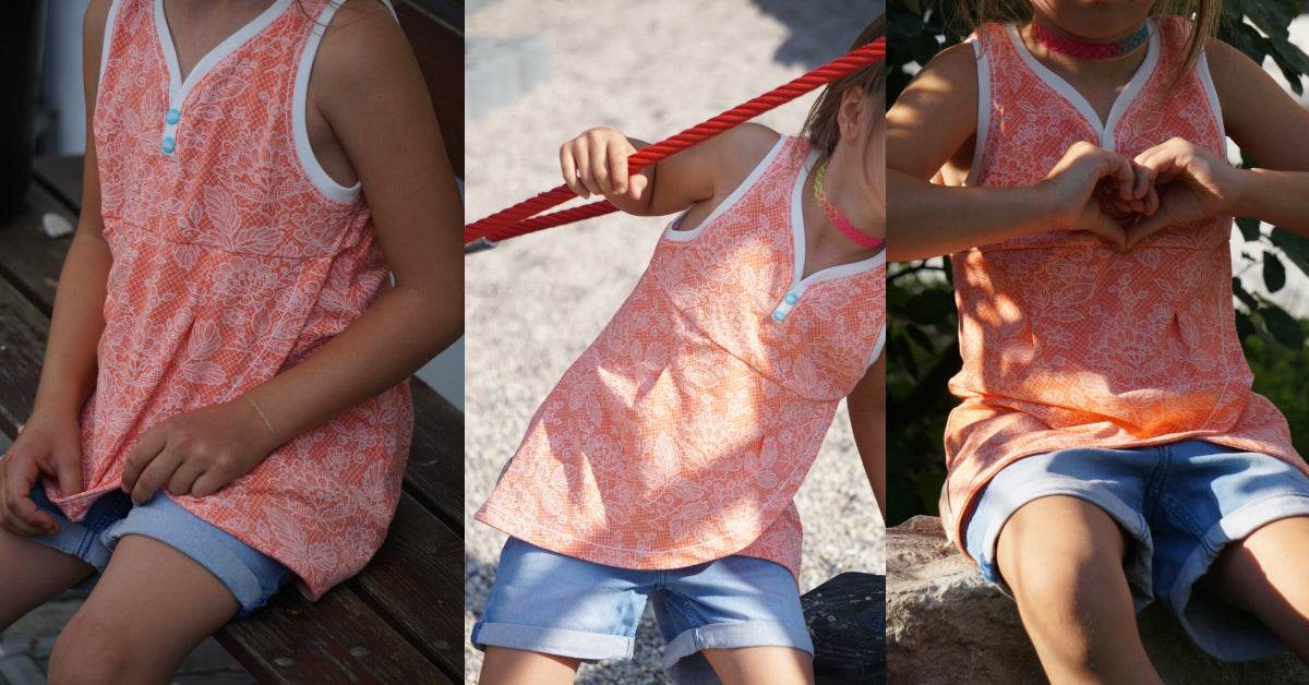 Der süße Ausschnitt mit angedeuteter Herzchenform gibt Udine den Girliestyle. Der Ausschnitt endet vorne in einer kleiner Knopfleiste. Diese kannst Du nach Lust und Laune mit Druckknöpfen oder klassischen Knöpfen verzieren. Die Knopfleiste muss beim Anziehen des Sommertops nicht geöffnet werden, da der Ausschnitt so konzipiert ist, dass er auch mit geschlossener Knopfleiste problemlos über den Kopf Deines Mädchens passt.