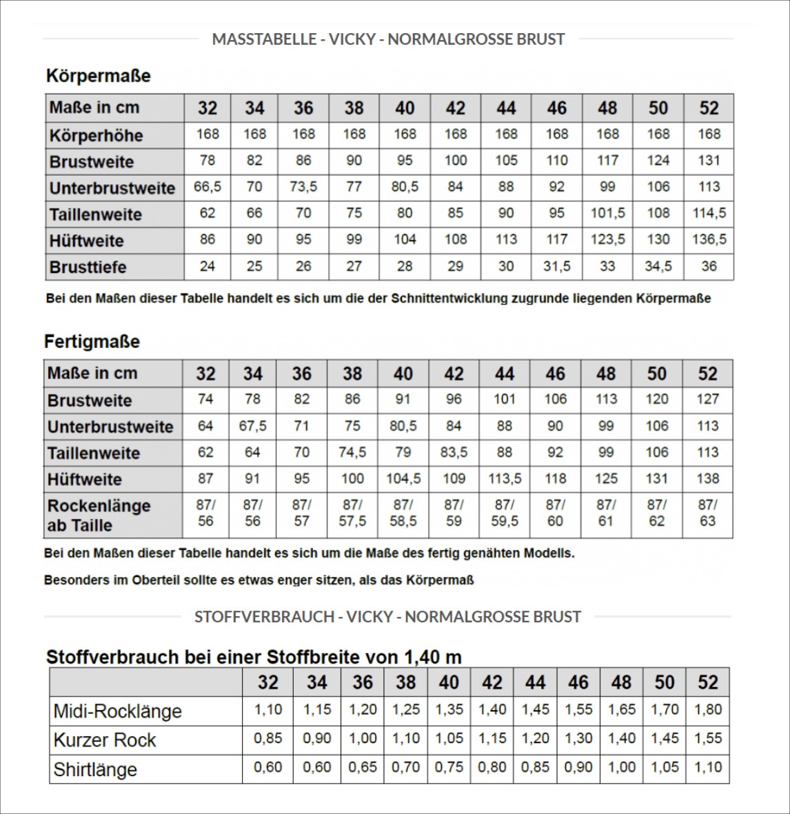 Für die normalgroße Brust – Maßtabelle unbedingt beachten !!!