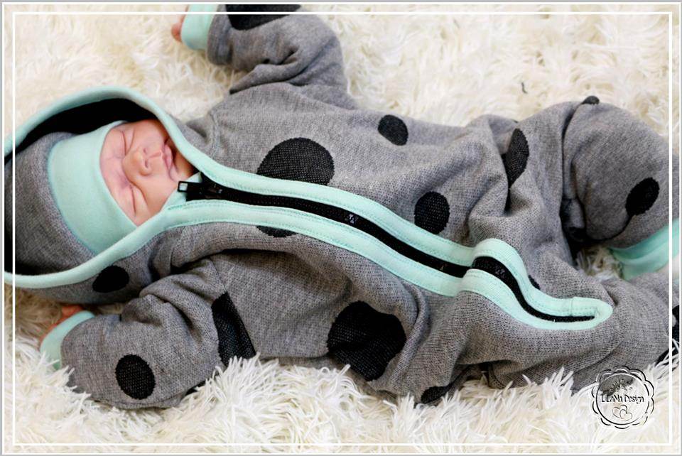 Besonders für ganz kleine Minis gibt es die Möglichkeit, Klappbündchen an die Ärmel und Beine des Anzugs zu nähen. So bleiben auch die Hände und Füße schön warm.