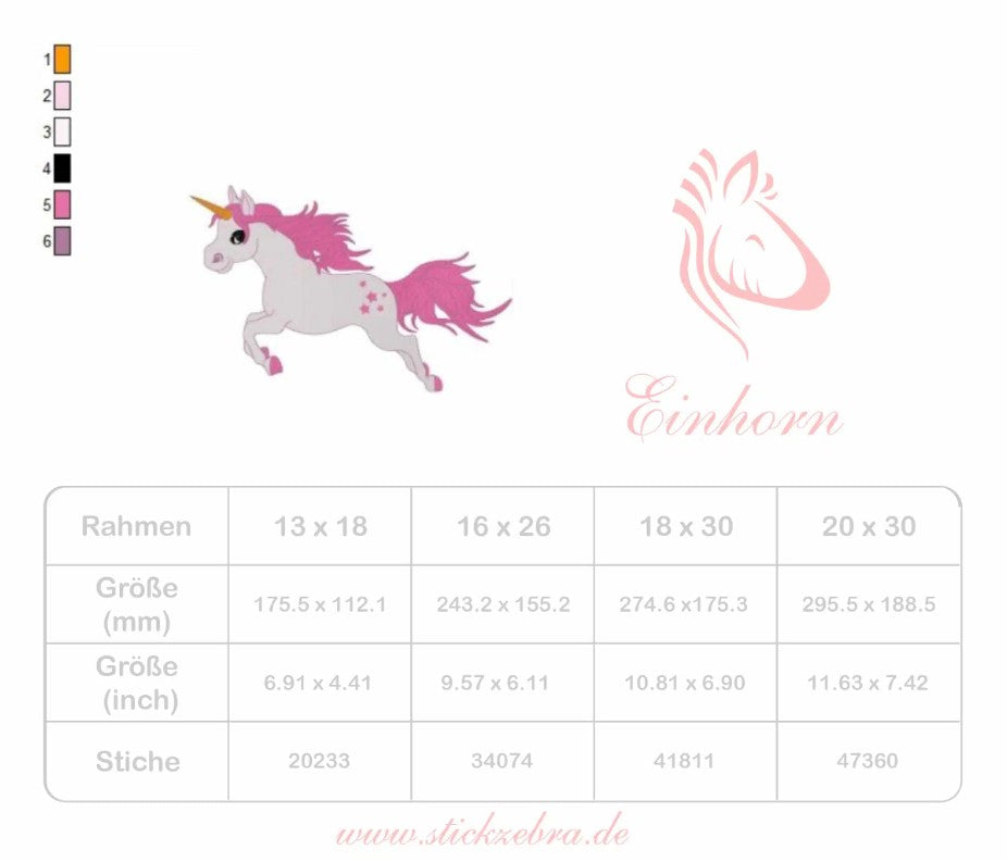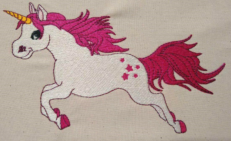 Das springende Einhorn landet voller Leichtigkeit auf deinem Stoff und begleitet dich mit jedem Stich.