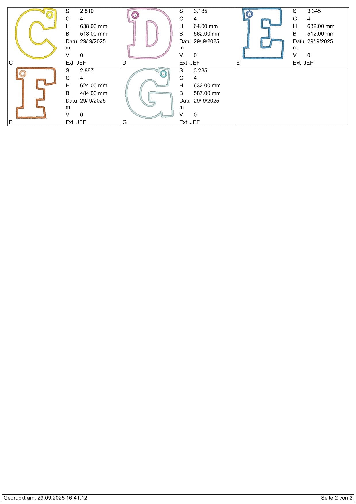Stickdatei Schlüsselanhänger Buchstaben Set 300