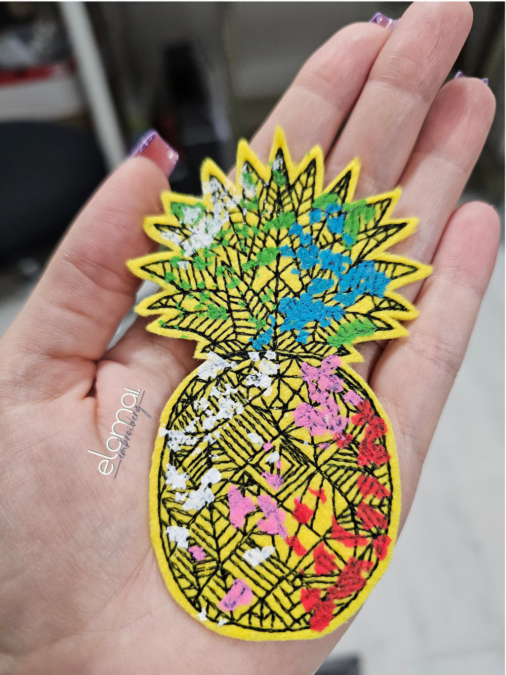 Mit dieser modernen Ananas Stickdatei - der Anatrocken- Kannst du wunderbare Sachen zaubern! Was ist denn Sommerlicher als eine Ananas? Die Redwork-Technik lädt zum Kreativwerden ein - mit Farbe oder Siebdruckkonfetti, mit Multi-color-Garn oder Sublimation, es ist vieles Möglich. Durch die Leichtigkeit der Redwork-Datei ist sie für fast alle Untergründe geeignet, ob Taschenstoff, Filz, Kunstleder oder Jersey (Mit entsprechender Verstärkung durch Viel natürlich). Sommerlich - frisch - modern : Anatrocken