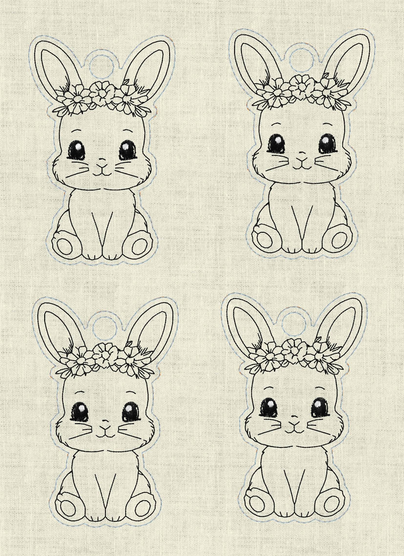 zuckersüße Hasen für Schlüsselanhänger mit Nuster und als Outline Sie werden komplett im Stickrahmen erstellt