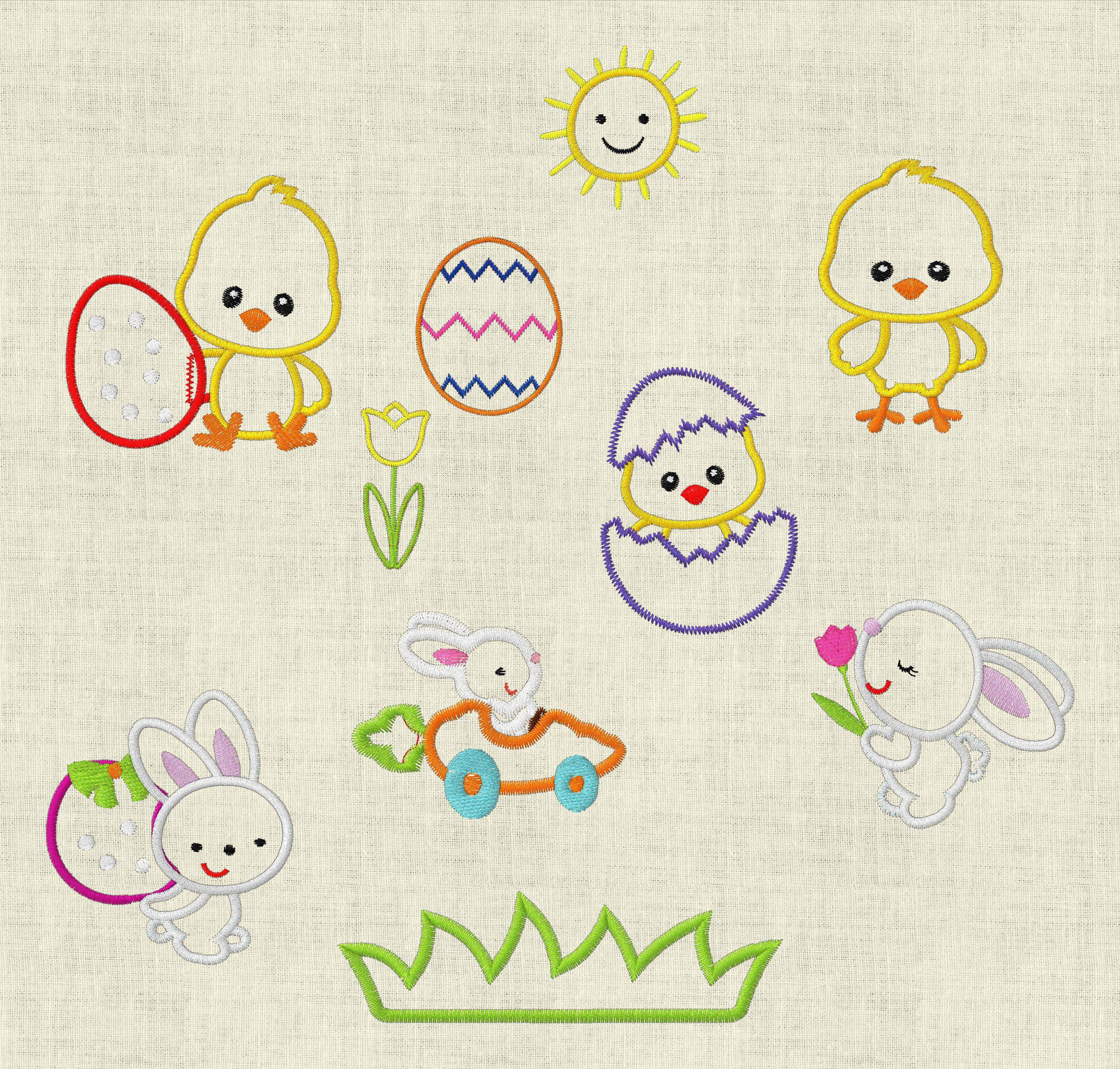 Stickdatei Ostern Applikation Küken Hase im Auto