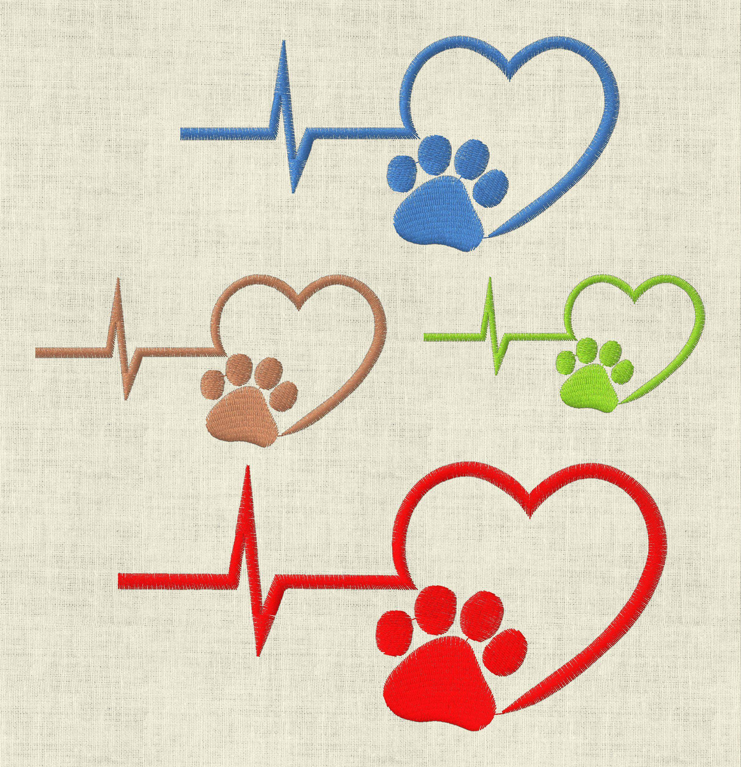 Stickdatei Hund Pfote mit Herzlinie Set 479