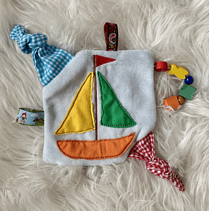 dieses zuckersüßes Knistertuch wird komplett im Stickrahmen erstellt mit Applikation und Knisterohren