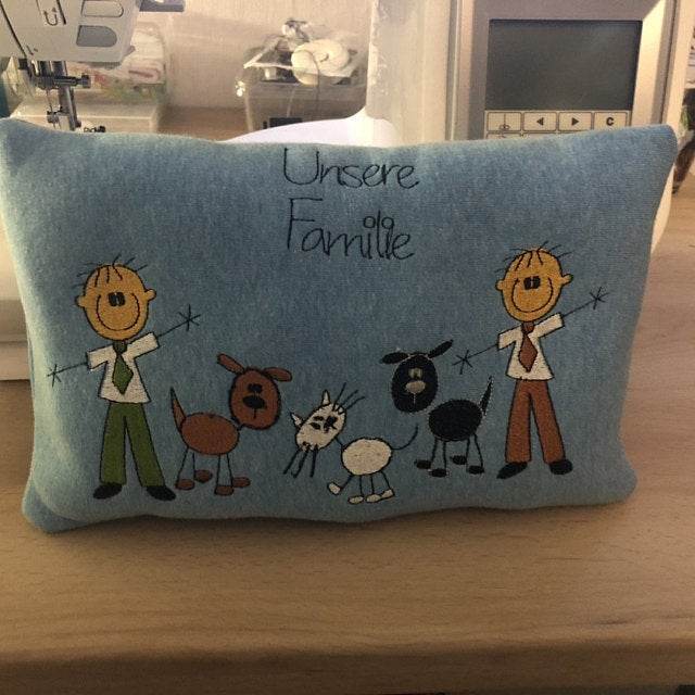 Stickdatei Strichmännchen Familie 3 mit Hund und Katze Set 196