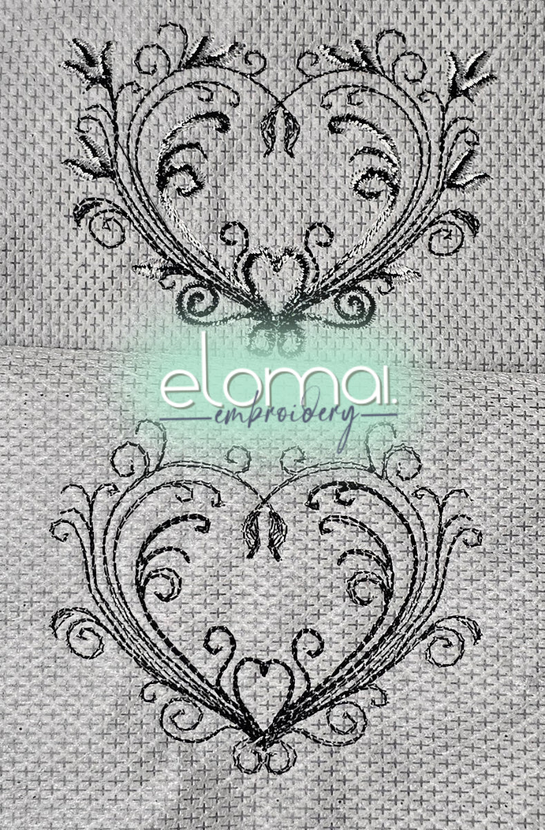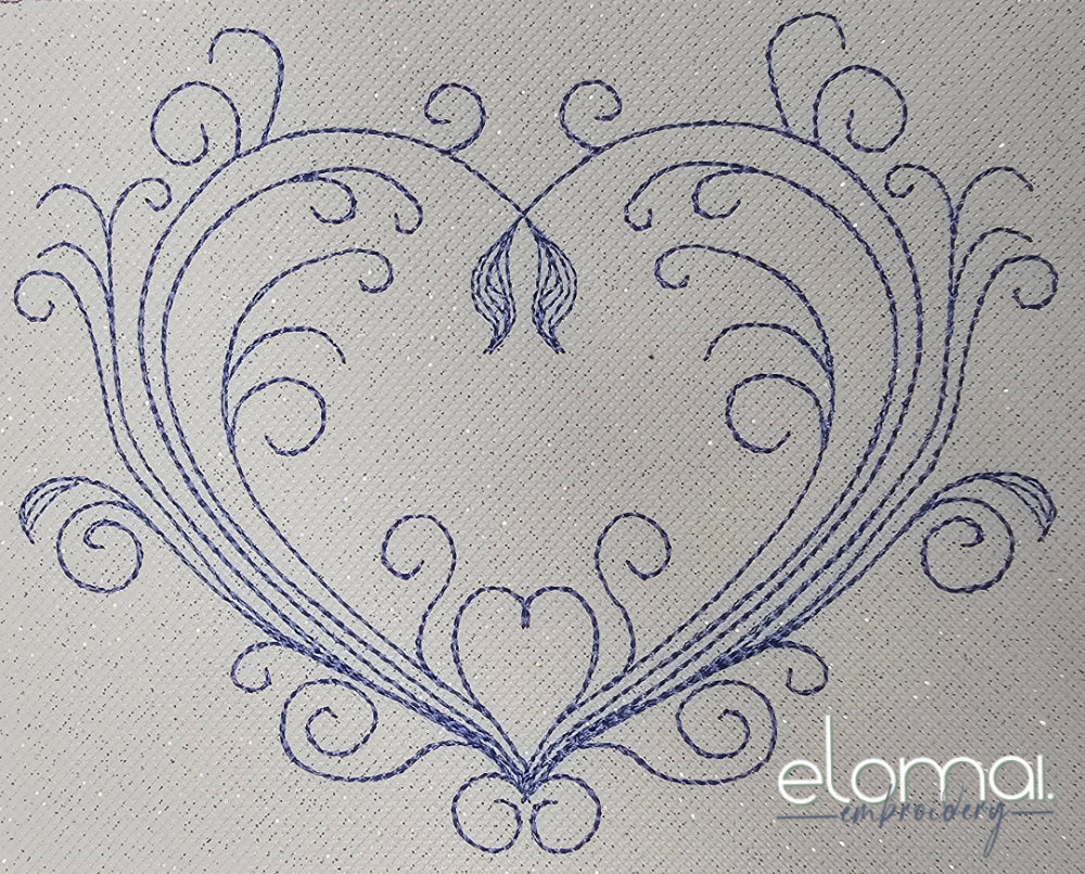 Stickdatei Swirl Heart 2 Varianten, 2 Größen (10x10. 13x18) Redwork Schnörkel Herz
