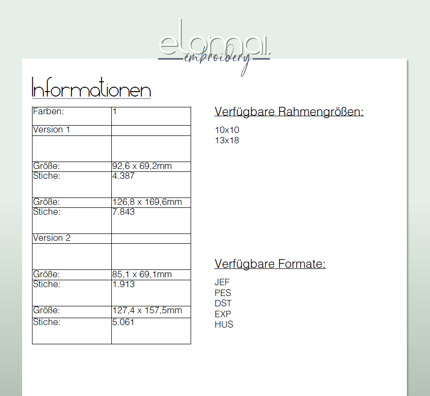 Die Stickdatei ist für Webware Digitalisiert, kann aber durch die geringe Stickdichte mit einem Schneidevlies auch gut für dehnbare Stoffe verwendet werden.