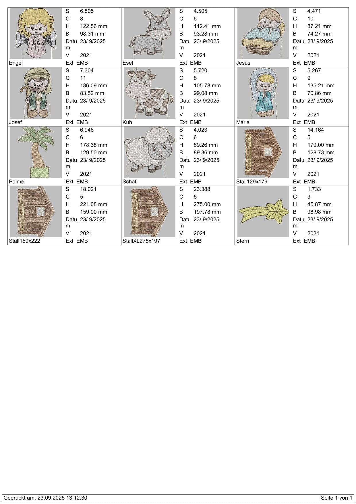 Dieses hochwertige Stickdatei-Set bietet dir 12 detailreiche Motive, darunter Maria, Josef, Engel, Tiere und Stall – perfekt geeignet für deine festliche Deko oder als stimmungsvolle Leuchtdeko für LED-Teelichter