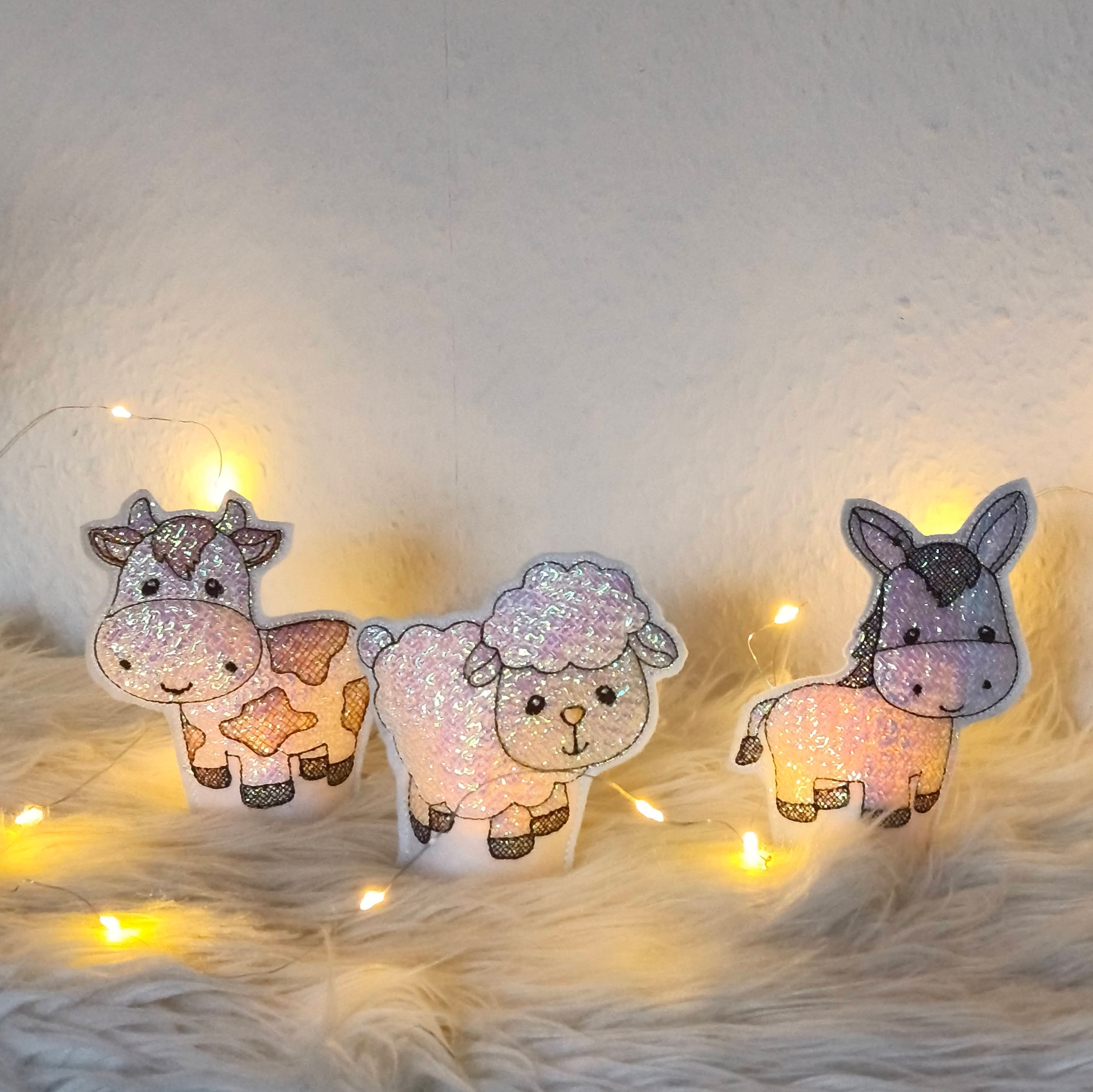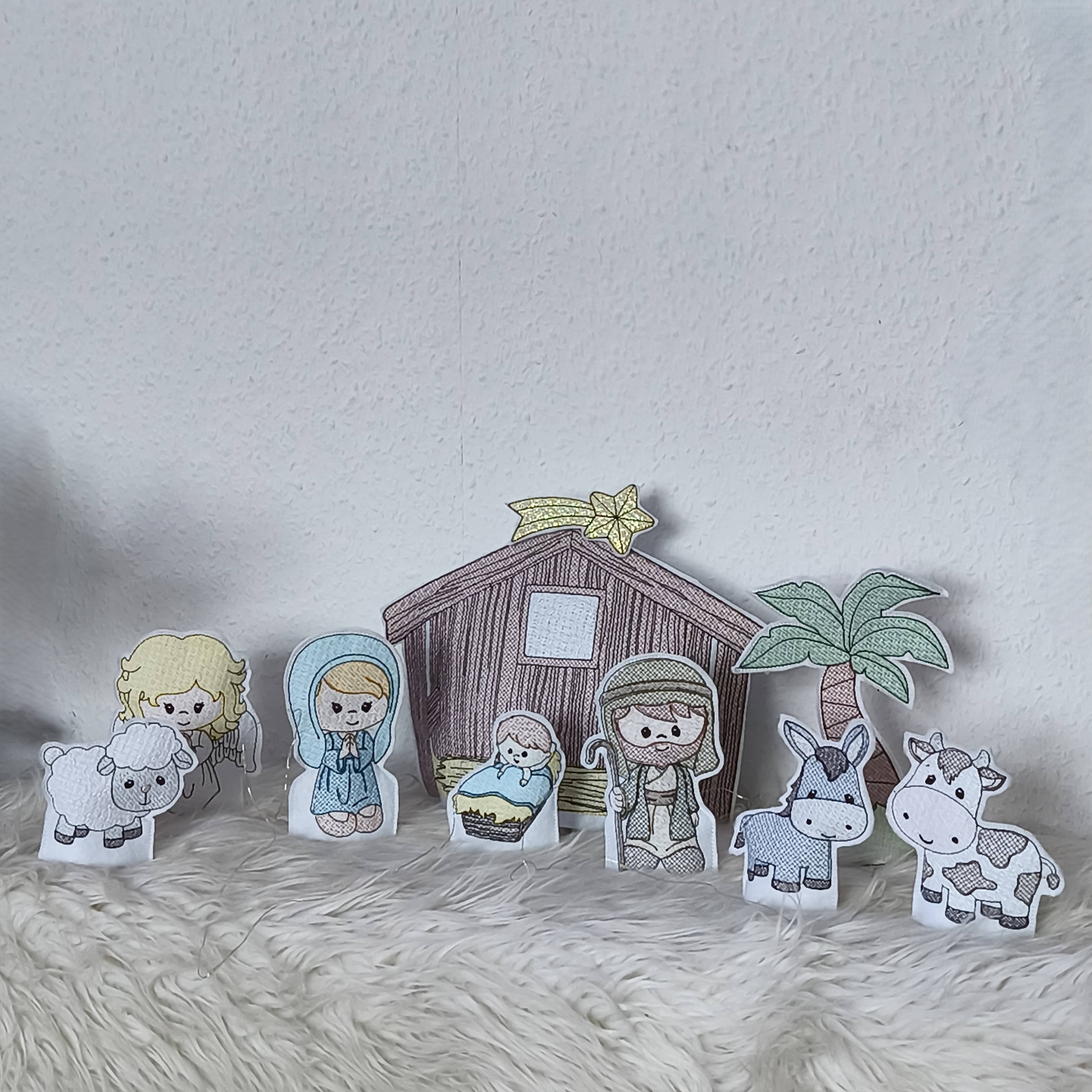Stickdatei Weihnachten Krippe In the Hoop Set 2585 – 12 Motive für festliche Dekoration & LED-Lichter