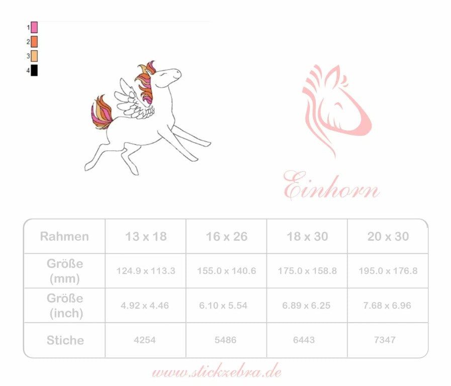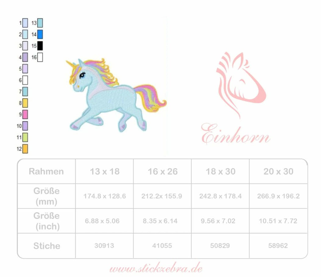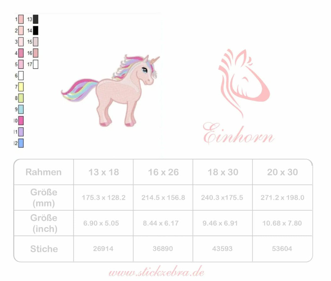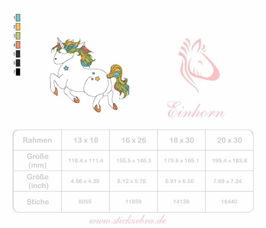 Einhorn Stickdatei, buntes Kindermotiv für deine Stickmaschine