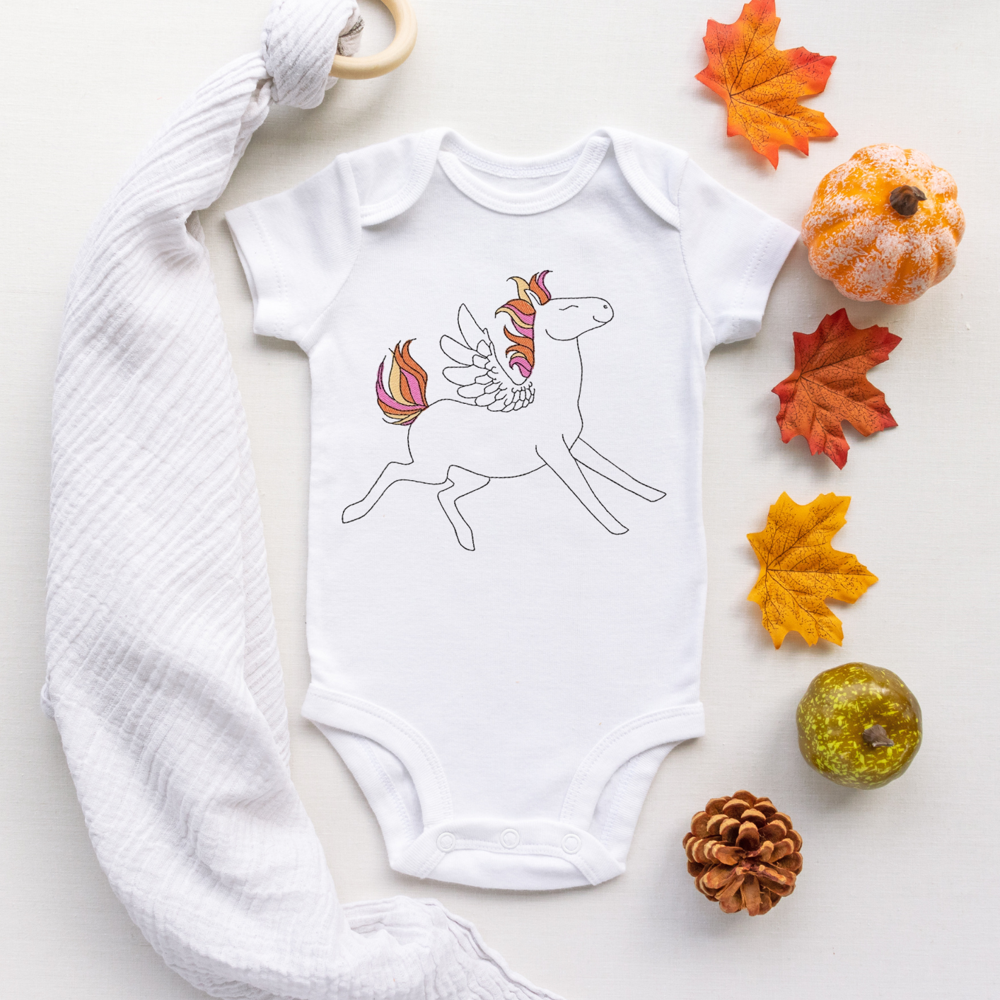 Pegasus Stickdatei, fliegendes Doodle Fantasy Kindermotiv für deine Stickmaschine