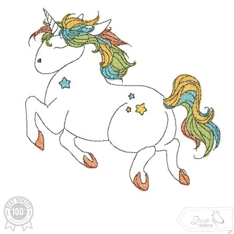 Einhorn Stickdatei, sternenreiches Doodle Kindermotiv für deine Stickmaschine