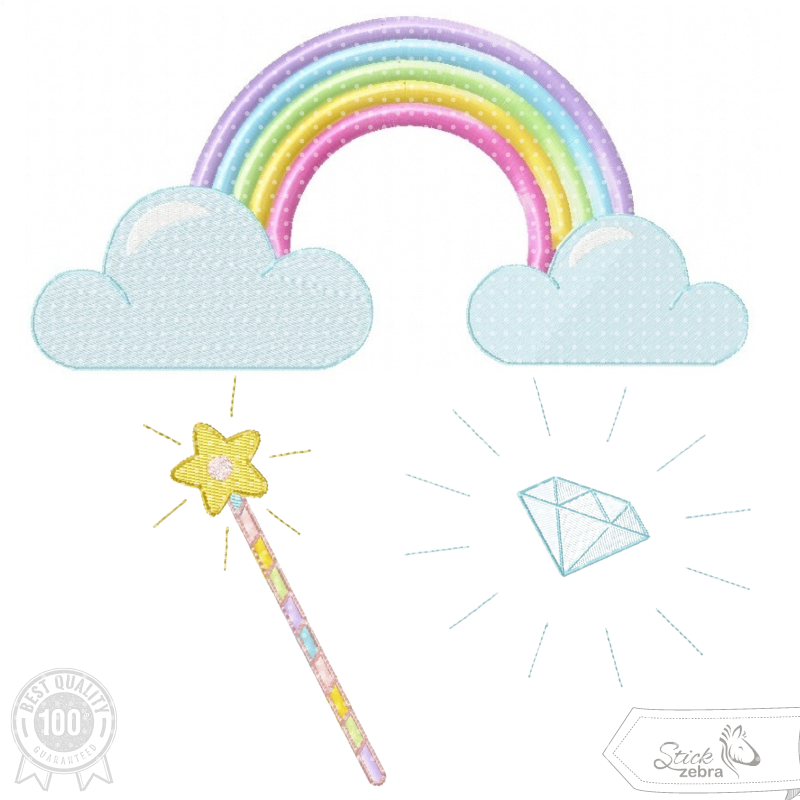 Einhorn Set Kristall, Zauberstab und Regenbogen Stickdatei, magisches Kindermotiv für deine Stickmaschine