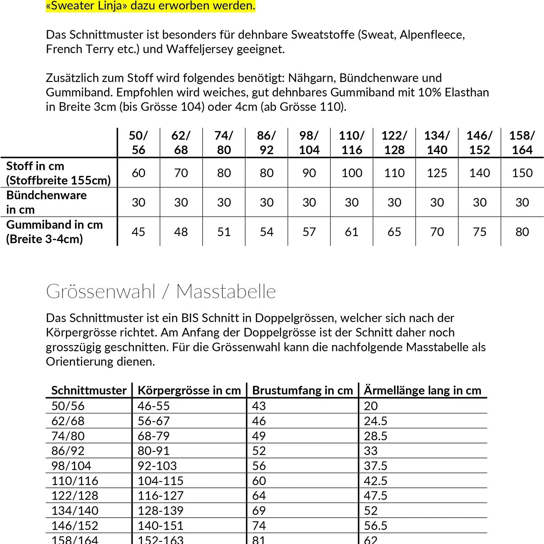 Sweater Linja ADD-ON, Schnittmuster Grösse 50-164