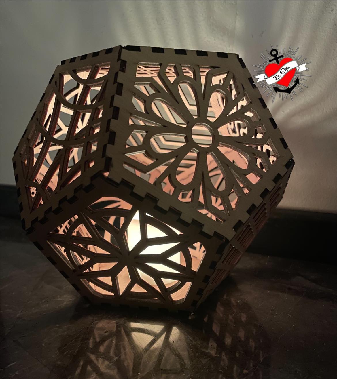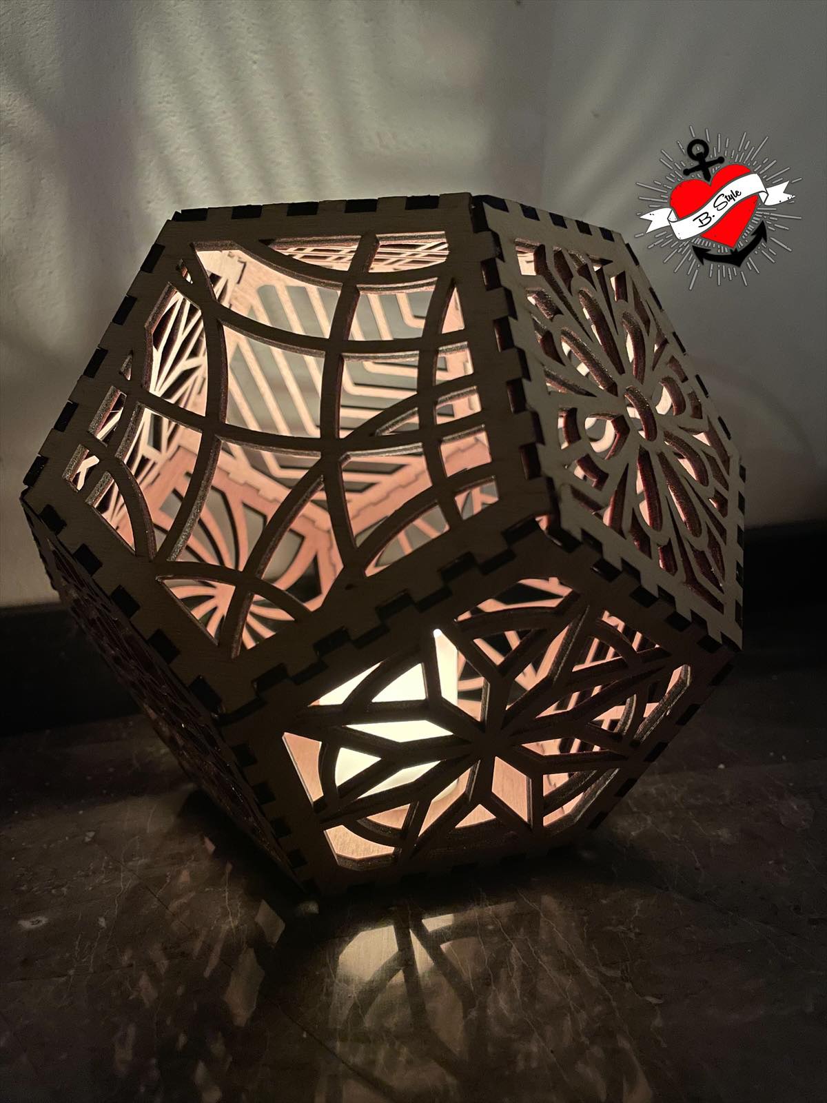 * Laserdatei für den Bau einer Lampe/Windlicht mit 12 Seiten, optimale Materialdicke 3 mm,