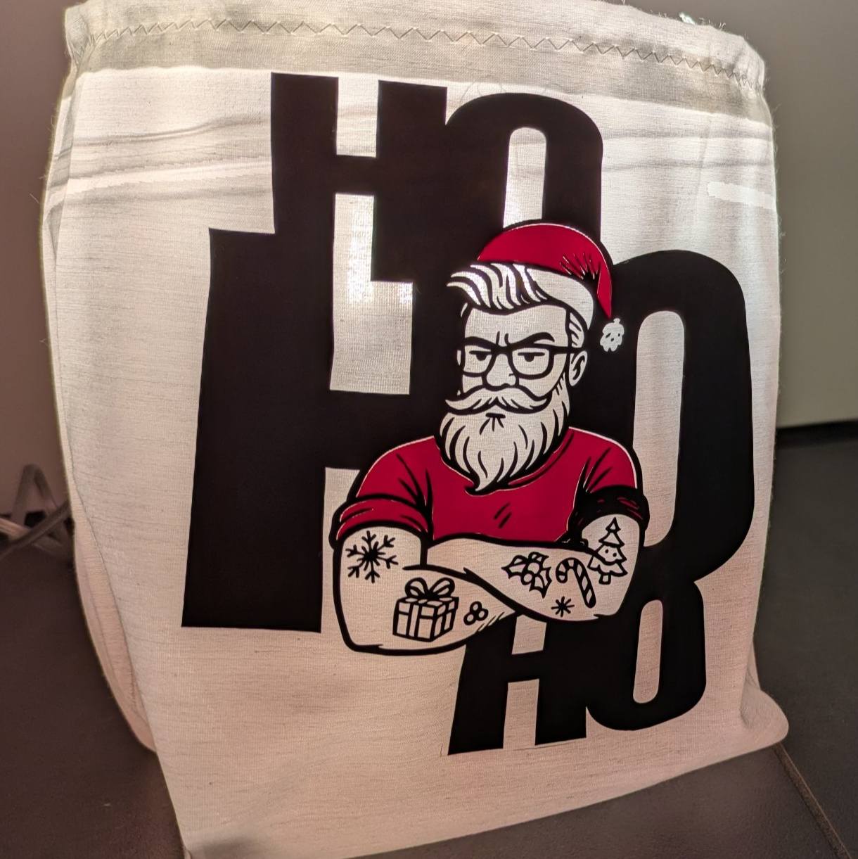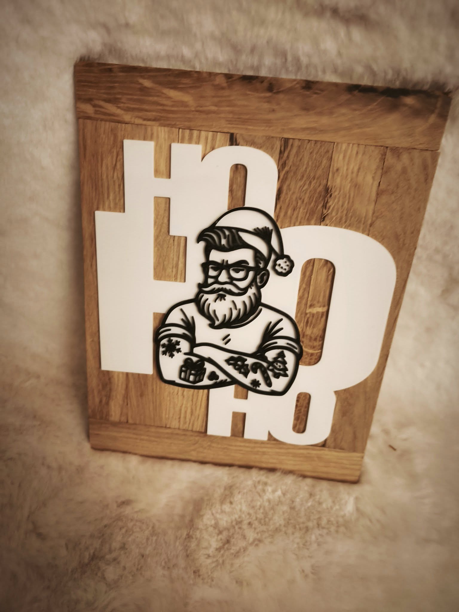 * Hipster Weihnachtsmann mit HoHoHo im Hintergrund