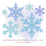 Sechs schöne winterliche Schneeflocken Plotterdateien zum Verschönern von Kleidung und Wohndeko.