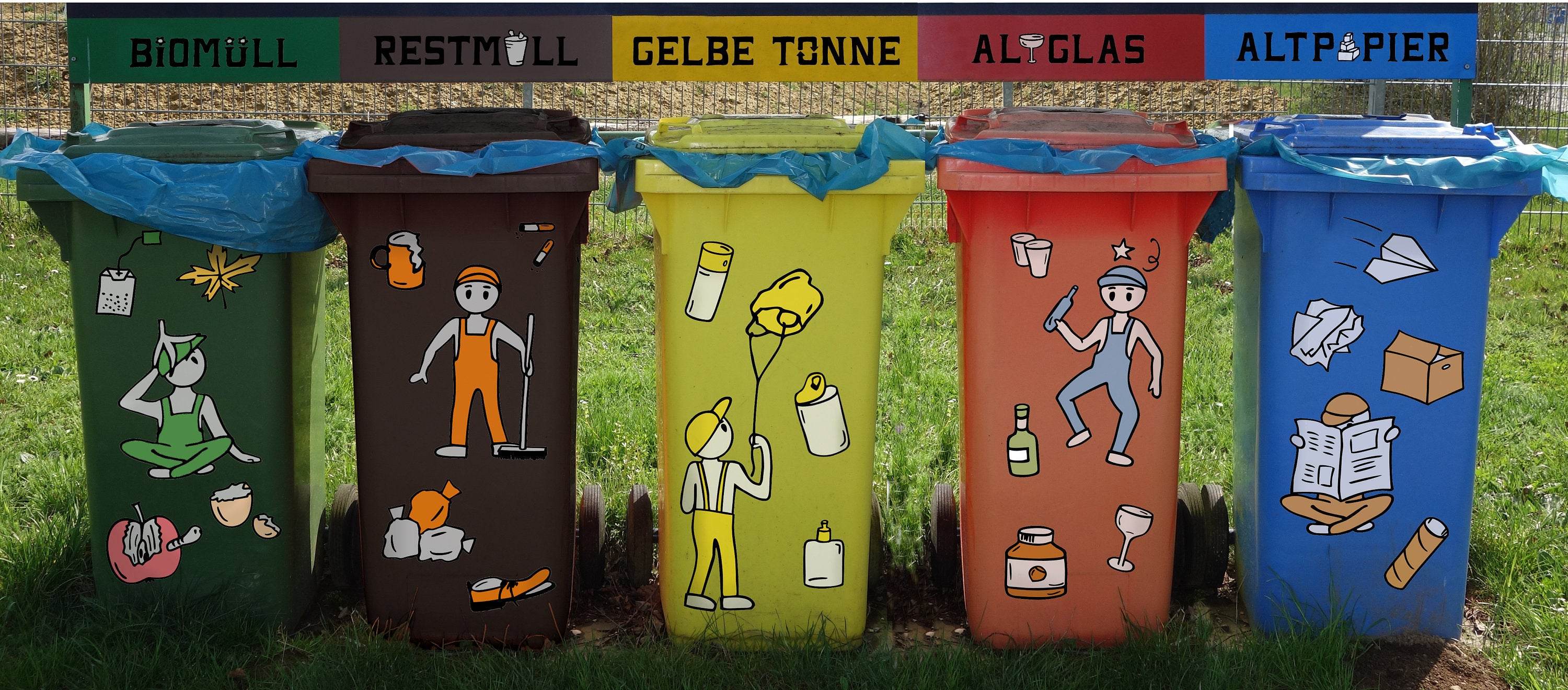 Die hässliche Mülltonne, die nicht mehr in die Garage passte und deshalb im Freien steht. Der Küchenmülleimer, der keinen Platz im Schrank gefunden hat. Die Kiste, die zu schade zum Wegwerfen war und in der jetzt das Altglas gesammelt wird. Die Box unterm Schreibtisch, in der die Schmierzettel landen. All diese kargen Behältnisse möchte ich mit Hilfe der Müllmännchen zu neuem Leben erwecken!