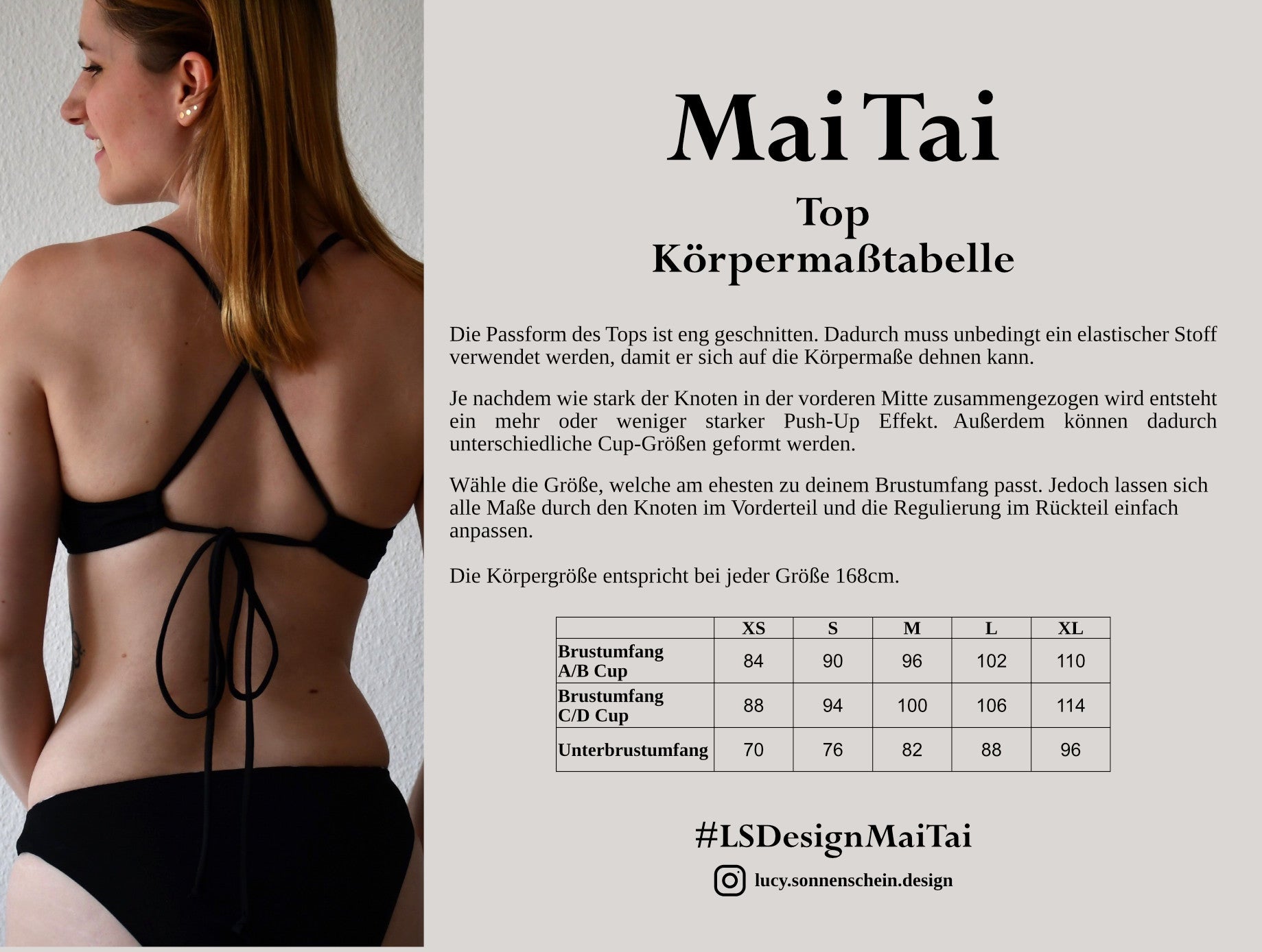 Dieses Schnittmuster für ein Bikini-Top mit Knotendetail im Vorderteil bietet dir ein trendiges Design und optimalen Halt. Die beiden Vorderteile laufen in ein Band über und werden elegant miteinander verknotet. Für zusätzlichen Komfort kannst du Schaumstoffcups einnähen, die mehr Halt bieten. Die Träger verlaufen durch Tunnel im Rückteil und lassen sich durch Verknoten individuell in Länge und Weite anpassen. Dank der Gummiverarbeitung bietet das Top perfekten Sitz und Stabilität, ideal für entspannte Sommertage.