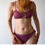 Dieses Schnittmuster für ein raffiniertes Bikini-Top besticht durch seine stilvollen Details und feminine Passform. Die Vorderteile werden am Ausschnitt und an der Unterkante mit einem Tunnel verarbeitet, durch die ein Band unter der Brust gezogen wird. Die Träger verlaufen überkreuz vom Rückteil zum Vorderteil und werden dort durch die Tunnel am Ausschnitt geführt, wo sie zwischen den Vorderteilen gebunden werden. Das Ergebnis ist eine verführerische Cut-Out Optik. Die raffinierten Raffungen und gebundenen Träger verleihen dem Bikini-Top eine besonders feminine Ausstrahlung, die perfekt für den Sommer ist.
