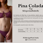 Die Passform des Bikini-Tops ist eng geschnitten. Dadurch muss unbedingt ein elastischer Stoff verwendet werden, damit er sich auf die Körpermaße dehnen kann. Je nachdem wie stark der Stoff im Bereich der Tunnel gerafft wird, kann die Passform selbst beeinflusst werden.