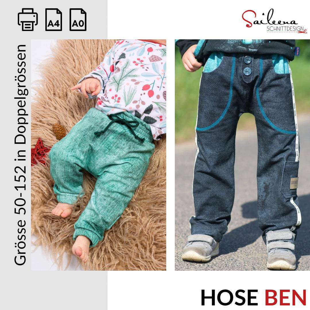 Hose Ben, Schnittmuster Grösse 50-152 in Doppelgrössen