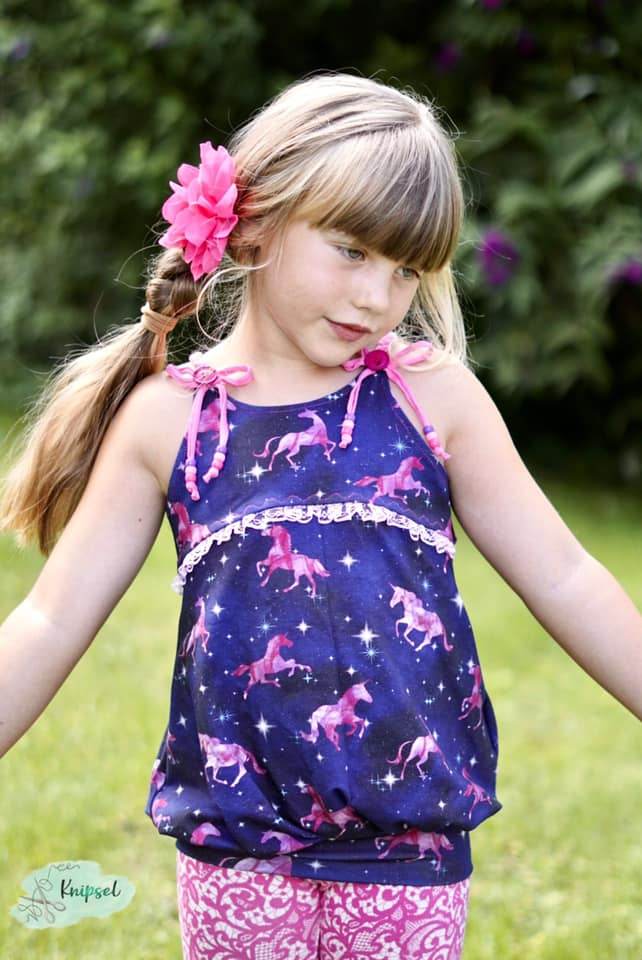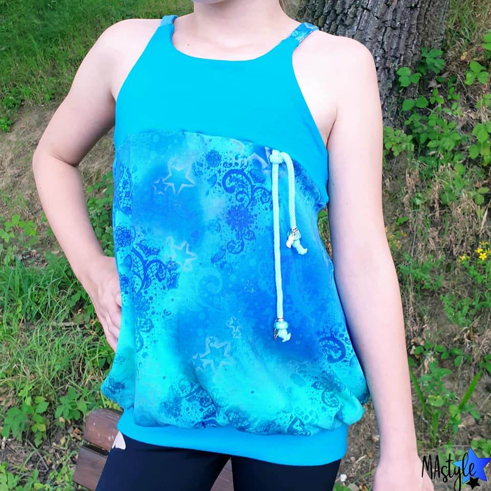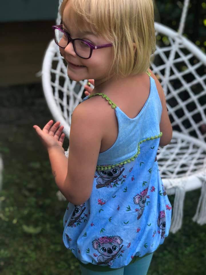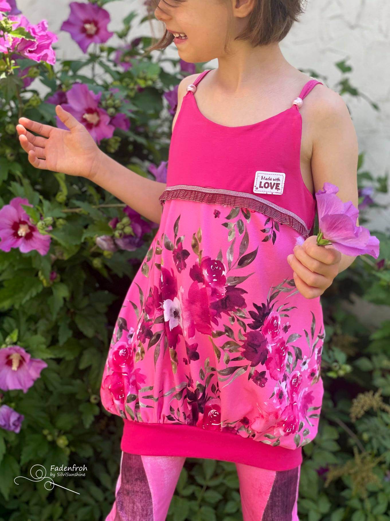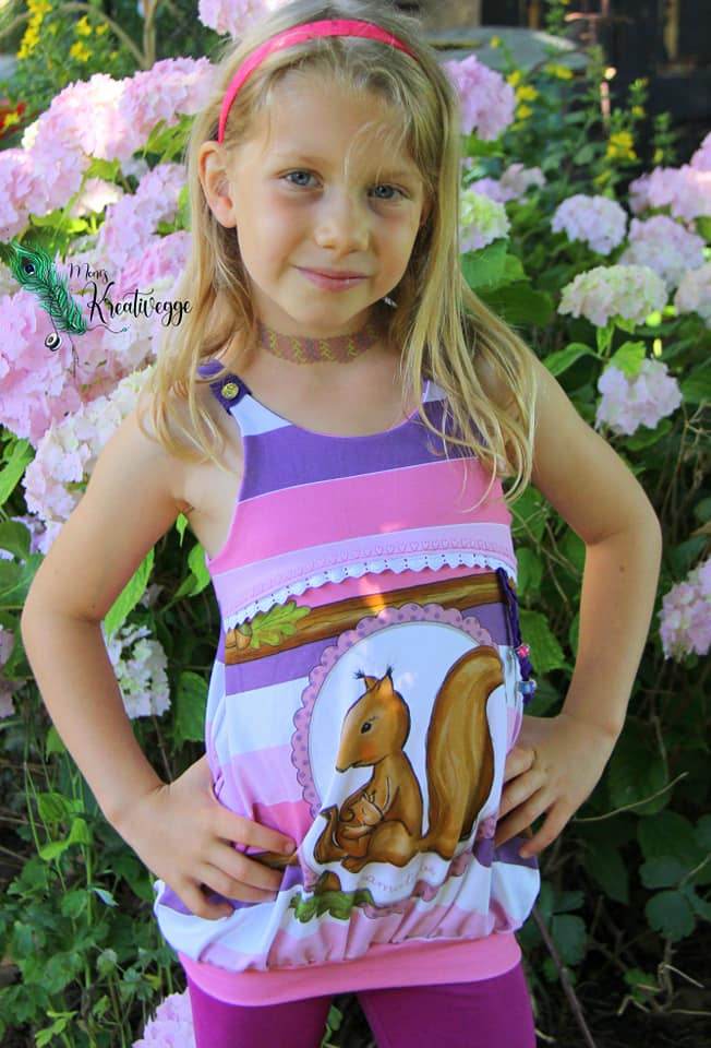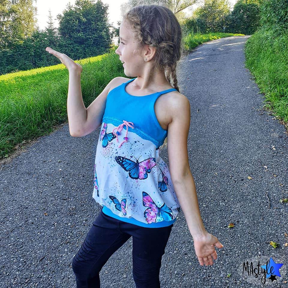 Das Ballontop ist ein Schnitt aus meiner Basicserie. Alle Schnitte, die dazugehören, sind dazu gedacht, ein einfaches, unkompliziertes Nähen zu ermöglichen und Stoffe toll wirken zu lassen. Besonderes Augenmerk habe ich darauf gelegt, dass die Schnittmuster, trotz ihrer eher einfachen Form, das gewisse Etwas nicht verlieren. Eben Teilchen, die Spaß machen, sich ultra bequem tragen lassen, für Anfänger geeignet sind und einfach trotzdem viel hermachen :)! Das Ballontop macht seinem Namen alle Ehre und das ganz ohne abgehoben zu wirken. Hier ist Raffung und Überweite mit einem anliegenden, einfachen Oberteil kombiniert. Die Teilung gibt dem Top das gewisse Etwas und lässt viel Freiraum zum Gestalten mit Spitze, Schleifen oder Ähnlichem. Die Träger des Tops sind einfache Jerseystreifen, welche sich gut dehnen lassen und trotzdem für einen tollen Halt sorgen. Egal ob ganz simpel aus zwei Stoffen kombiniert oder aufwendig gestaltet ist das Ballontop immer ein kleines Highlight :)!