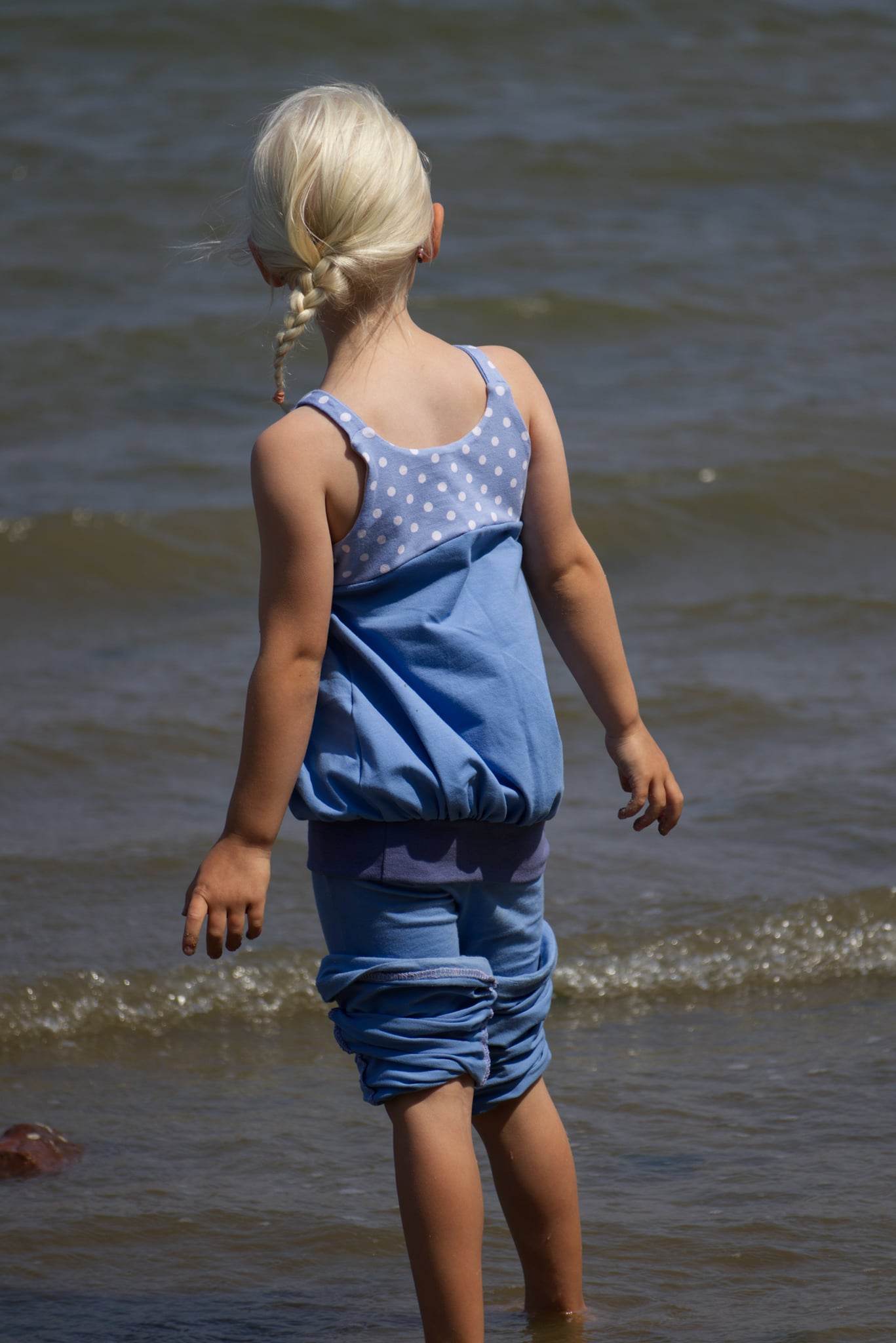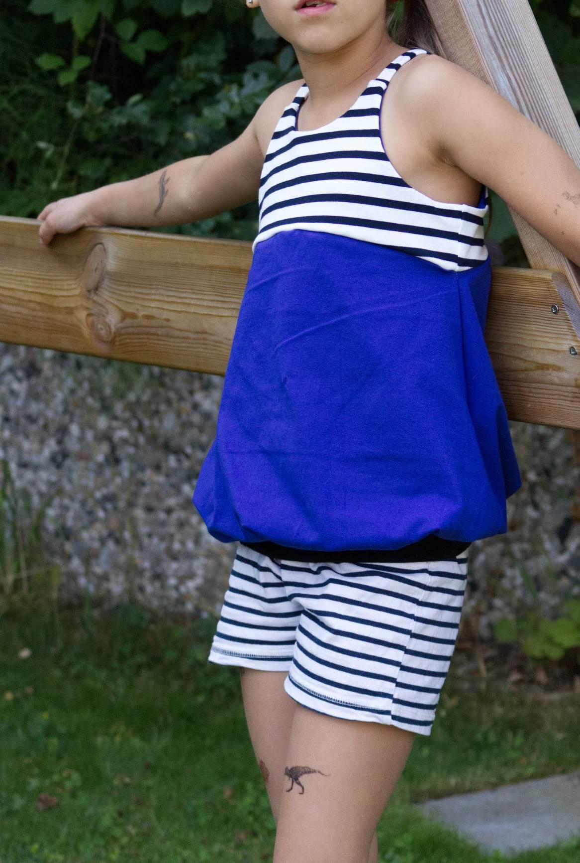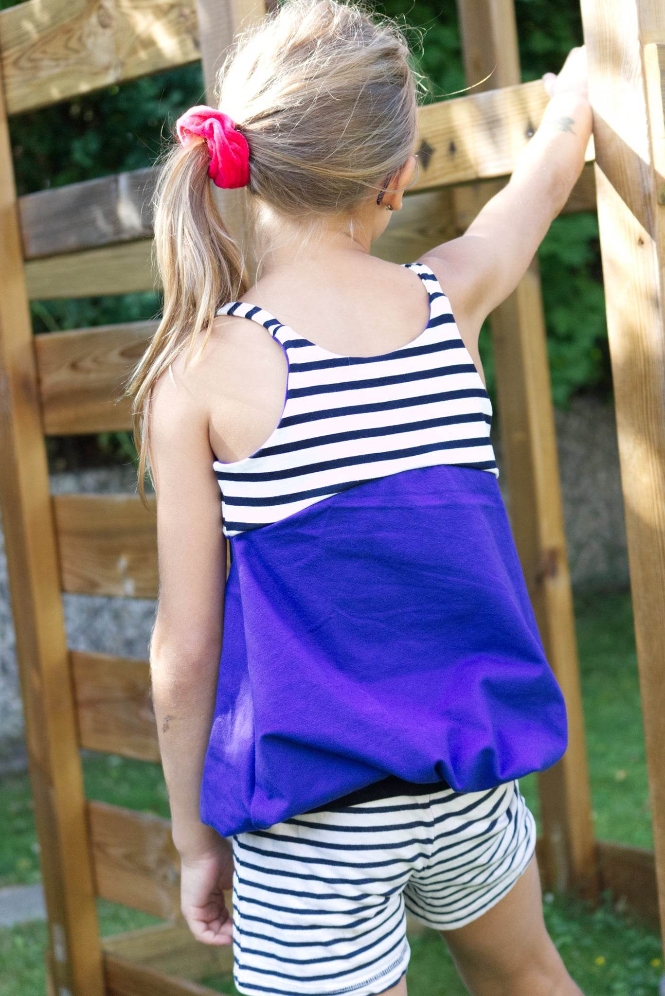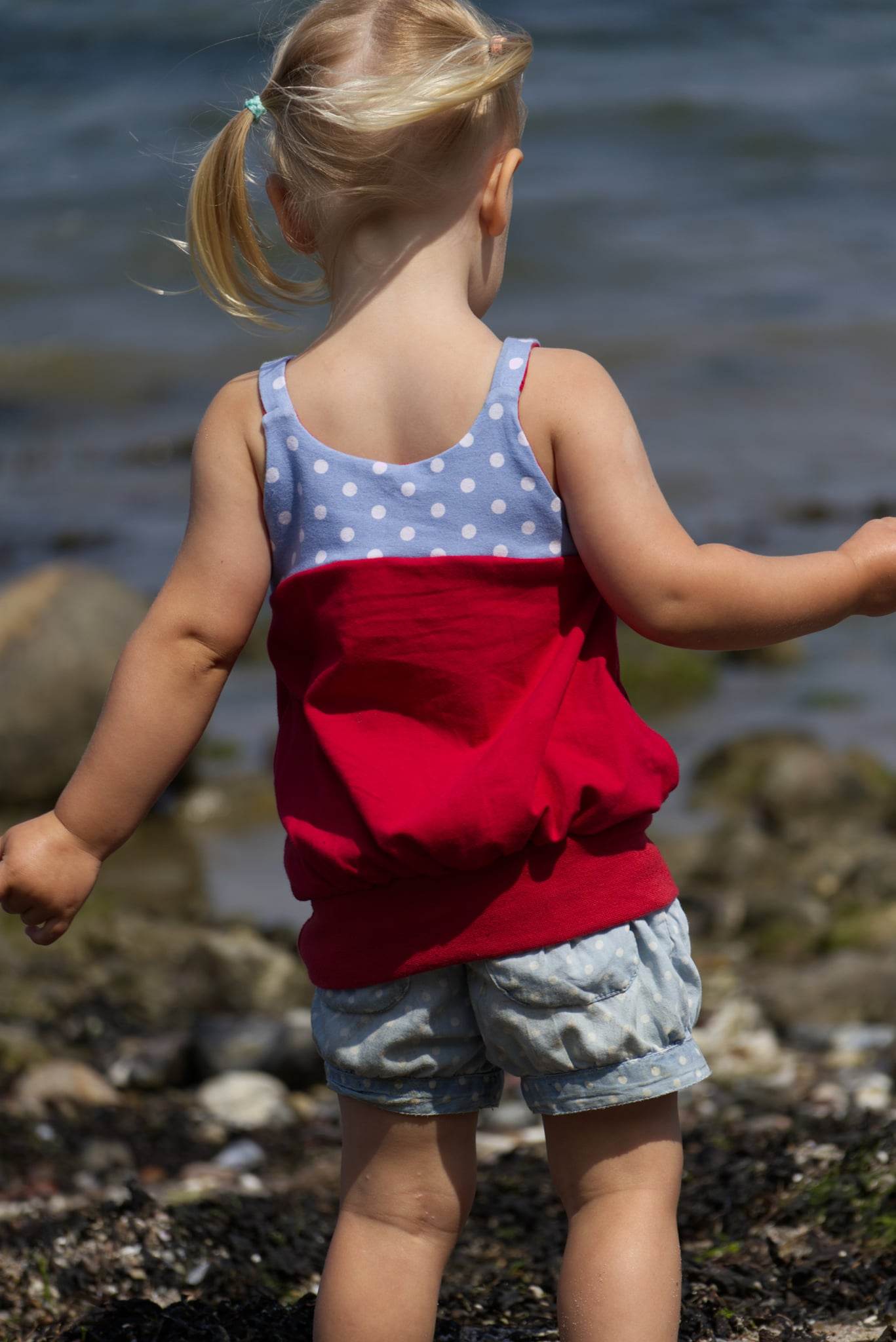 Das Ballontop ist ein Schnitt aus meiner Basicserie. Alle Schnitte, die dazugehören, sind dazu gedacht, ein einfaches, unkompliziertes Nähen zu ermöglichen und Stoffe toll wirken zu lassen. Besonderes Augenmerk habe ich darauf gelegt, dass die Schnittmuster, trotz ihrer eher einfachen Form, das gewisse Etwas nicht verlieren. Eben Teilchen, die Spaß machen, sich ultra bequem tragen lassen, für Anfänger geeignet sind und einfach trotzdem viel hermachen :)! Das Ballontop macht seinem Namen alle Ehre und das ganz ohne abgehoben zu wirken. Hier ist Raffung und Überweite mit einem anliegenden, einfachen Oberteil kombiniert. Die Teilung gibt dem Top das gewisse Etwas und lässt viel Freiraum zum Gestalten mit Spitze, Schleifen oder Ähnlichem. Die Träger des Tops sind einfache Jerseystreifen, welche sich gut dehnen lassen und trotzdem für einen tollen Halt sorgen. Egal ob ganz simpel aus zwei Stoffen kombiniert oder aufwendig gestaltet ist das Ballontop immer ein kleines Highlight :)!