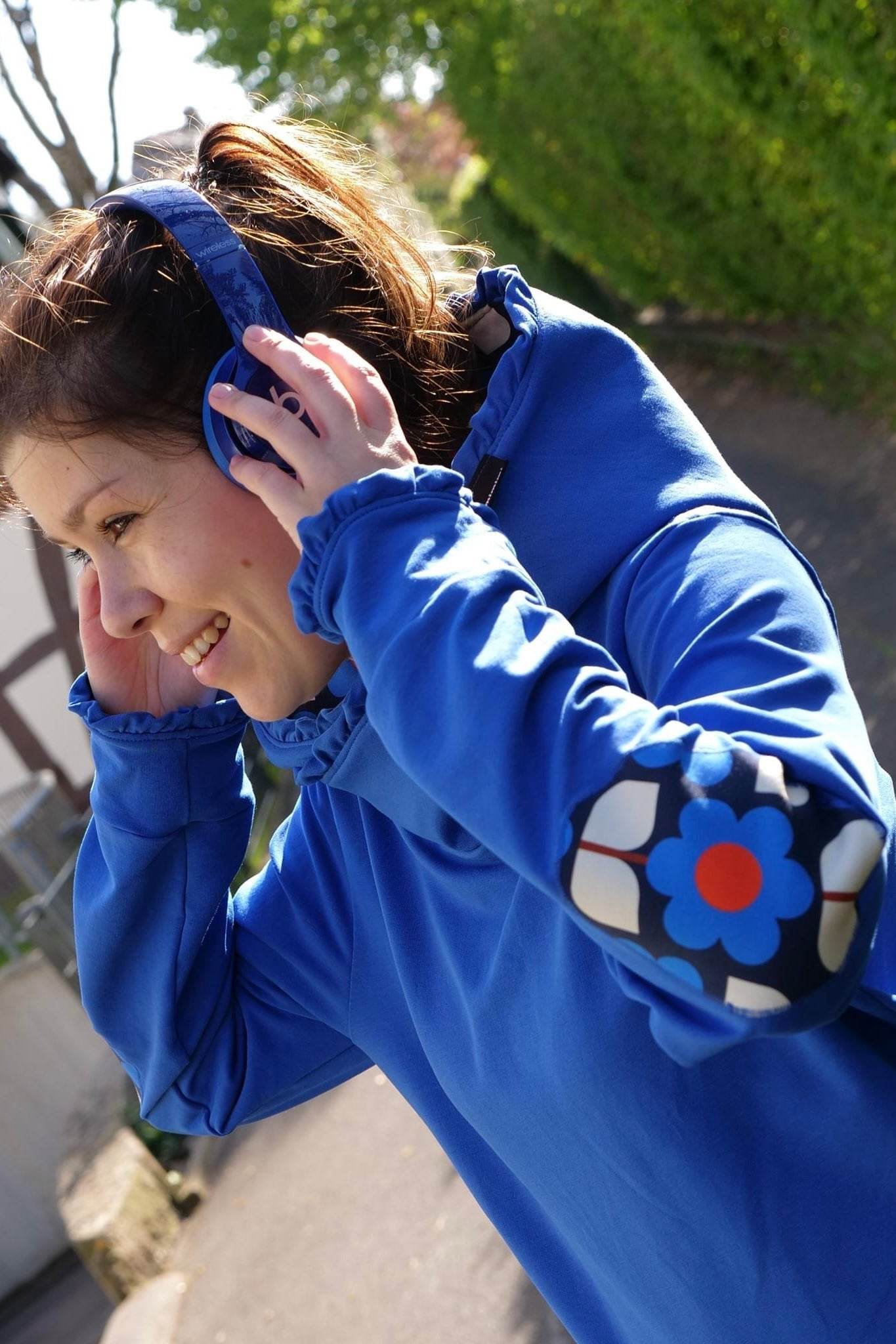 Die Idee hinter dem Schnittmuster Hoodie Ladylike ist ein gemütlich sitzender Hoodie mit einer raffinierten Kapuze. Ein bisschen verspielt, gerne sportlich schick kombiniert und definitiv auch mal bürotauglich. Zur Auswahl stehen zwei Längen. Die kürzere Variante geht bis zur Taille und die längere Variante bis zur Hüfte. Wem jedoch auch die längere Variante zu kurz ist, kann Vorder- und Rückenteil unkompliziert verlängern, da der Hoodie gerade geschnitten ist.