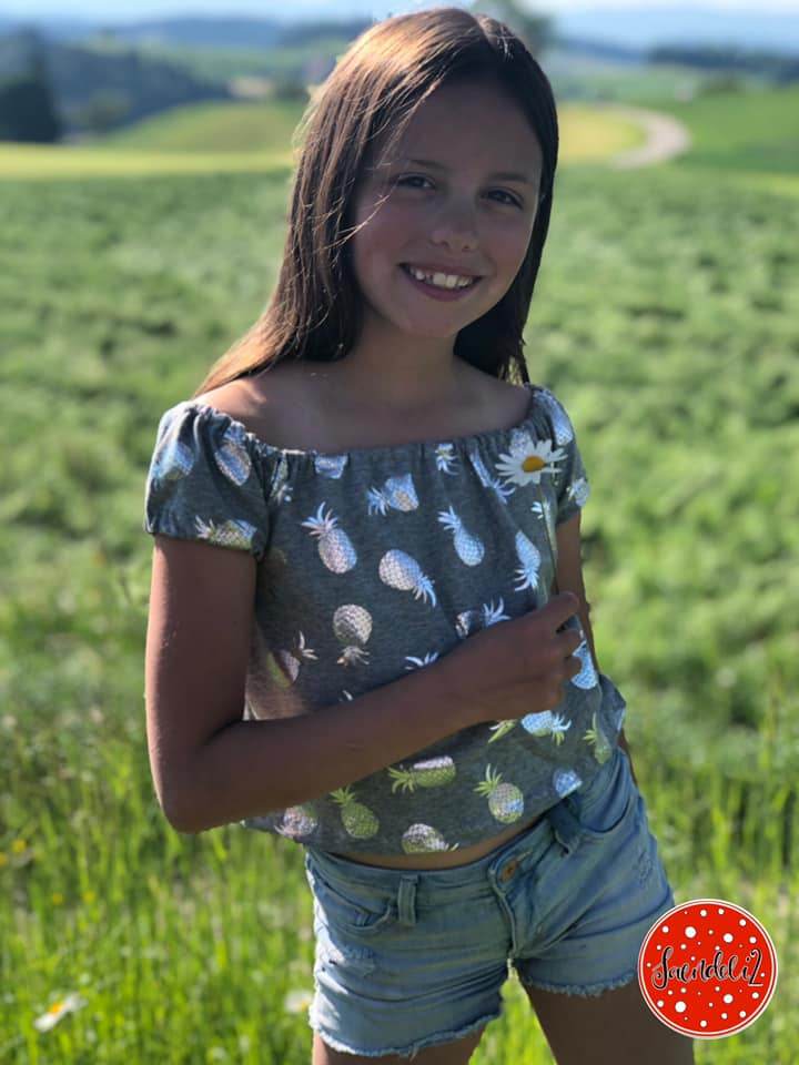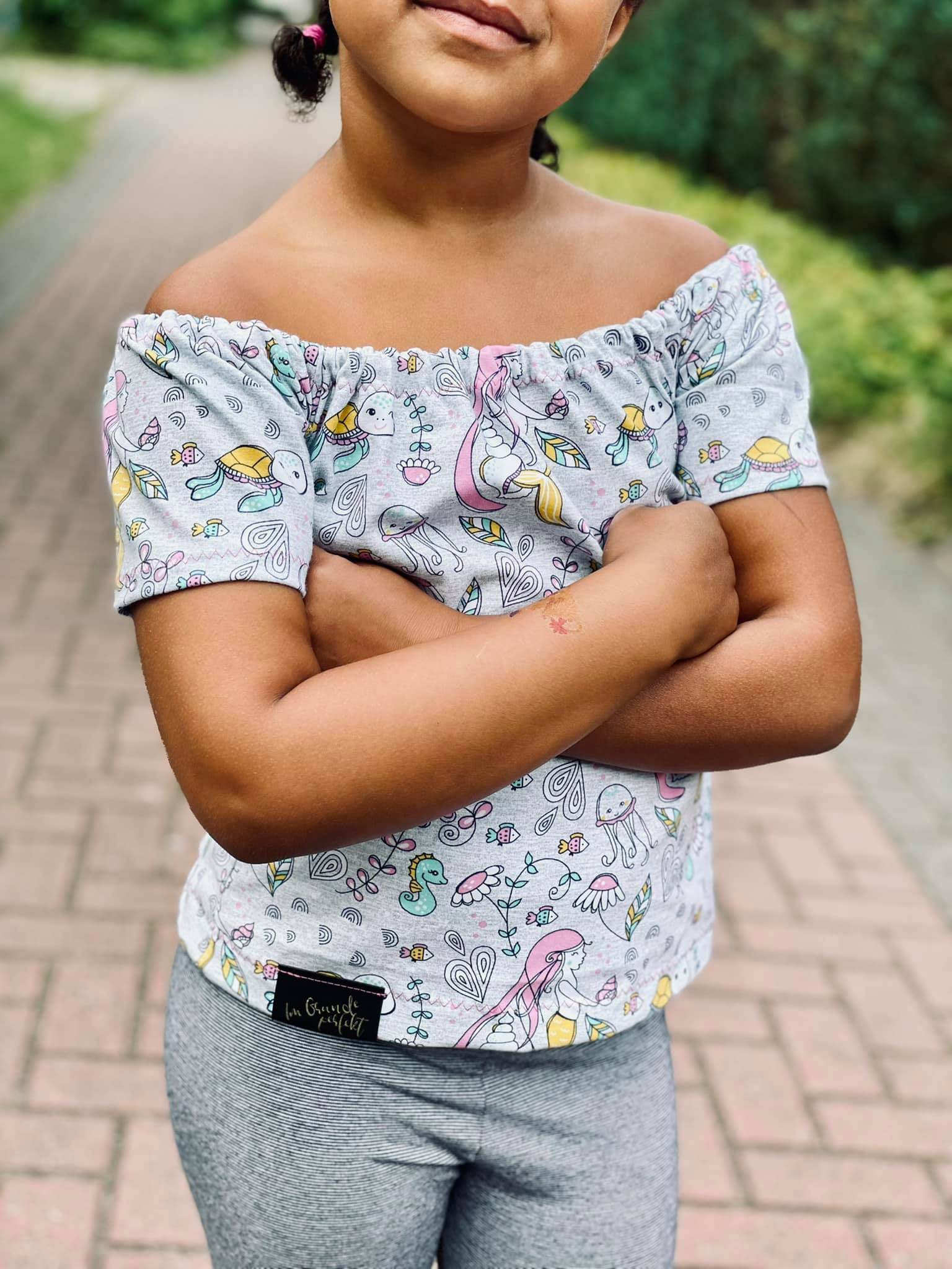 FIXbooks sind einfache, schnell zu nähende Schnitte, die aber alles andere als langweilig sind ! Meine Vorstellung ist es mit den FIXbooks und den simplen Schnitten die Kreativität ein Stück weit mehr anzukurbeln... Setze Teilungen, kürze oder verlängere nach belieben, tob dich einfach daran aus...die FIXbooks schreien förmlich danach ... Das Carmenshirt ist super einfach genäht und trotzdem nett anzuschauen... somit nähst du deinem kleinen Fräulein in Windeseile ein totales Sommer-Must-Have. Der Grundschnitt ist verhältnismäßig kurz gehalten und passend zur aktuellen Highwaistmode. Du kannst es aber problemlos und ganz nach Belieben verlängern oder auch kürzen. So simpel der Schnitt auch ist – er ist super wandelbar und macht immer eine gute Figur :-)