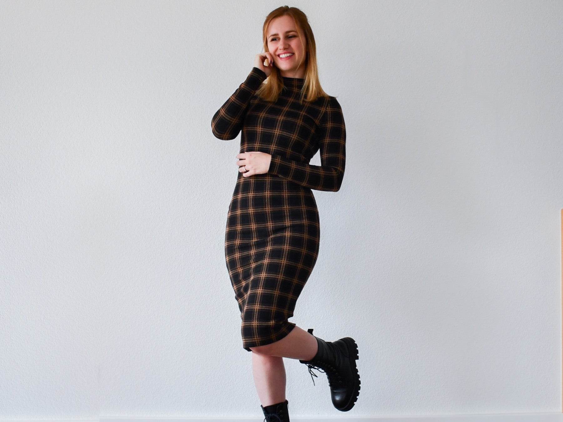 Das Schnittmuster ist körperbetonend gestaltet. Dadurch muss unbedingt ein elastischer Stoff verwendet werden, damit er sich auf die Körpermaße dehnen kann. Dabei verzichtet es vollständig auf Abnäher. Durch den elastischen Stoff schmiegt es sich trotzdem schmeichelnd an den Körper an.