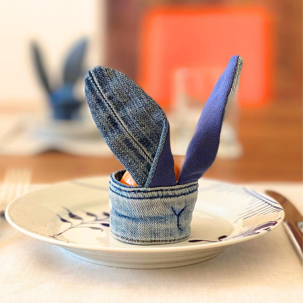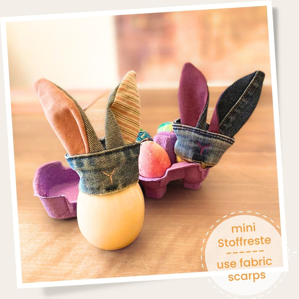 Jedes Jahr kannst du neu kombinieren, anders dekorieren. Genau dafür liebe ich diese vielseitige Oster-Nähidee aus dem abgetrennten Jeansbund. Schnell genäht, einfach umzusetzen. Aus einem alten Jeansbund entsteht die Basis, mit Stoffresten nähst du die Hasenohren – gern in deiner Lieblingsfarbe. Ob als Serviettenhalter, Eierbecher, Geschenkanhänger oder kleines Oster-Mitbringsel. "Der Eierlikör bekommt Hasenohren aufgesetzt. Oder beim Osterfrühstück bekommt jeder ein buntes Ei auf seinen Teller gestellt.