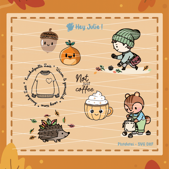 Plotter- und Laserdatei Herbstzauber 3er-Set Kuscheln & Kaffee