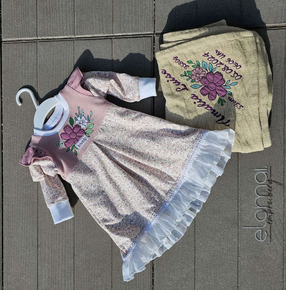 Mit dieser herzigen Blumen Stickdatei zauberst du wundervolle Akzente auf Kleider, Babydecken, Schultüten oder was auch immer du dir vorstellen kannst. Du kannst bei den Blüten verschiedenste Stoffe verarbeiten und somit die tollsten Effekte zaubern. Das "Label" mit dem Schriftzug "lovely" wird auch mit aufgestickt und setzt einen liebevollen Akzent. Und mit der ausführlichen Anleitung wird alles so genau erklärt, dass jeder Anfänger ein genauso beeindruckendes und hochwertiges Ergebnis erzielen.