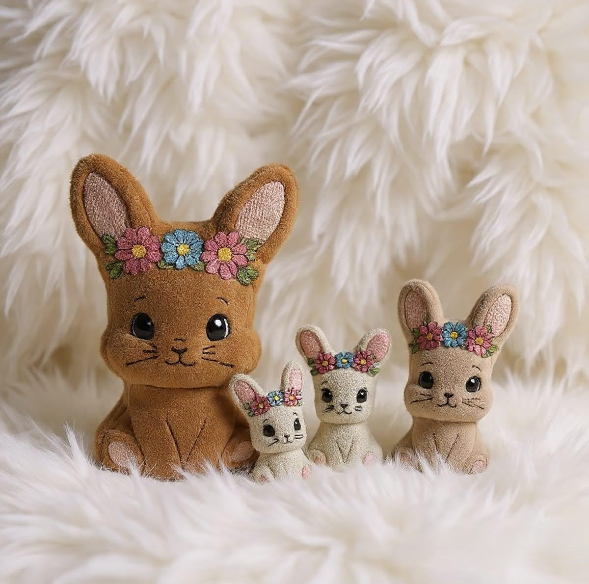 Mit diesem liebevoll gestalteten Stickdatei-Set stickst du bezaubernde Hasen Kuscheltiere in fünf praktischen Größen – perfekt für Geschenke, Dekorationen oder als individuelles Highlight.