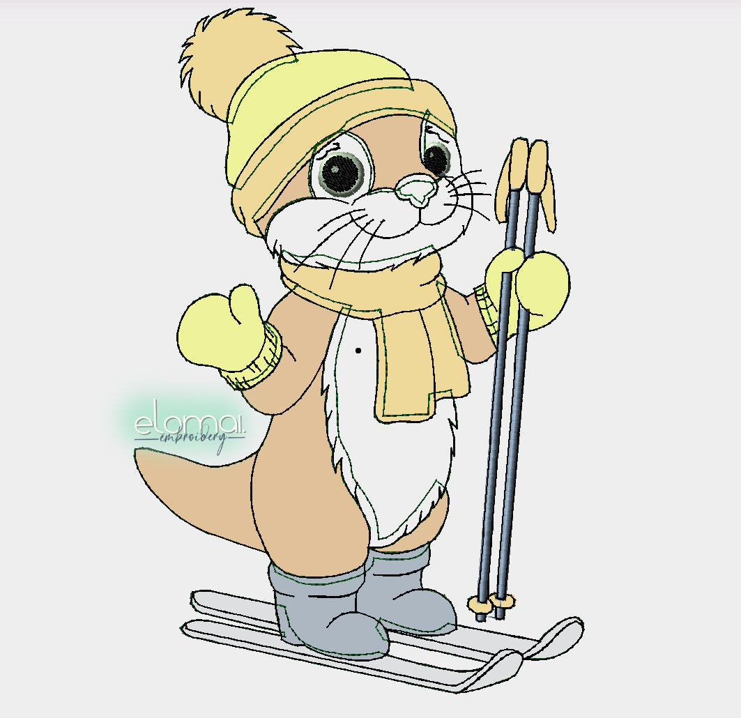 Stickdatei Ski Otter Willi - Doodle Applikation Winterfreunde 5 Größen 13x18 - 20x30