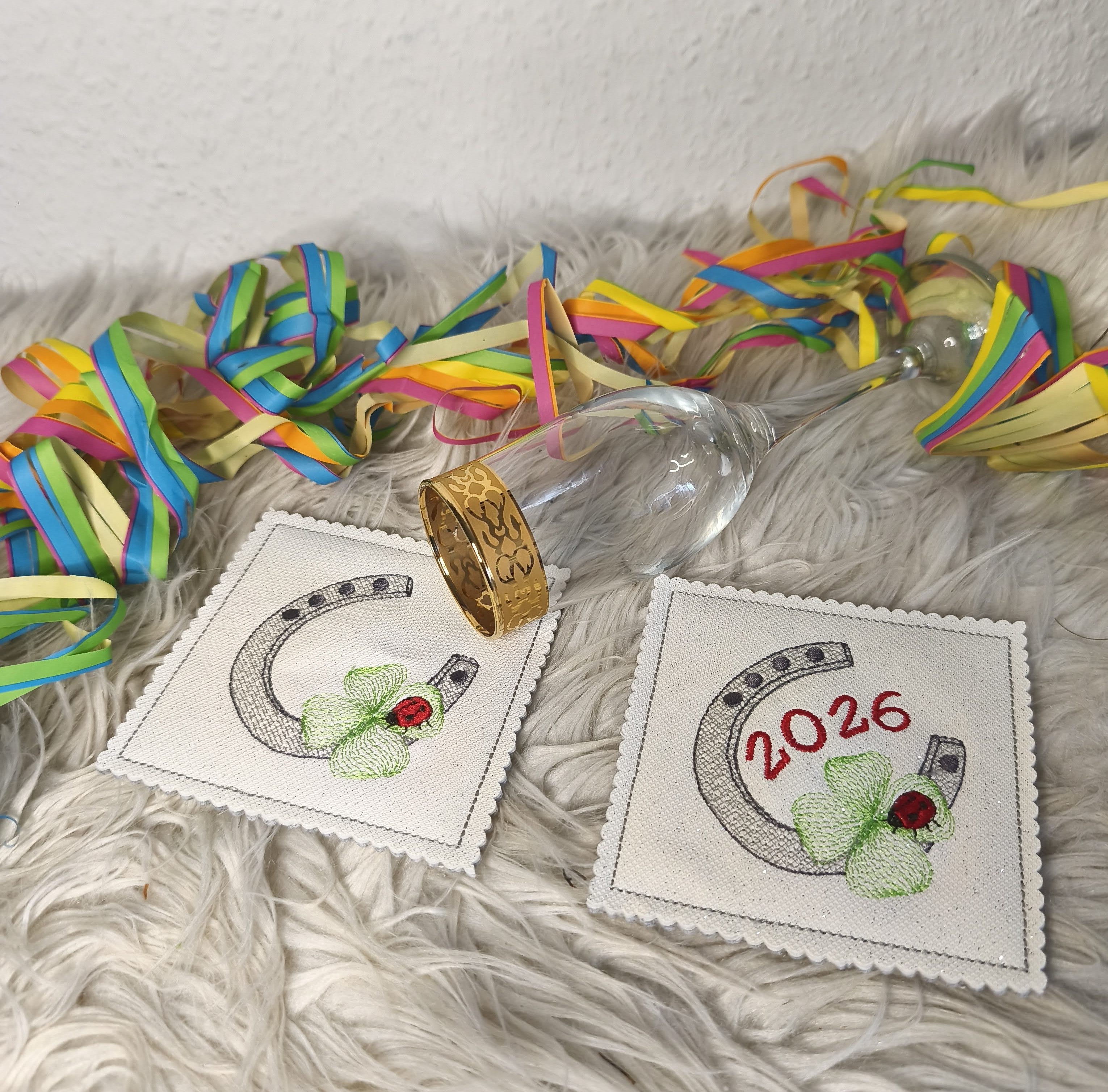 Stickdatei Glücksbringer Untersetzer Set 2602